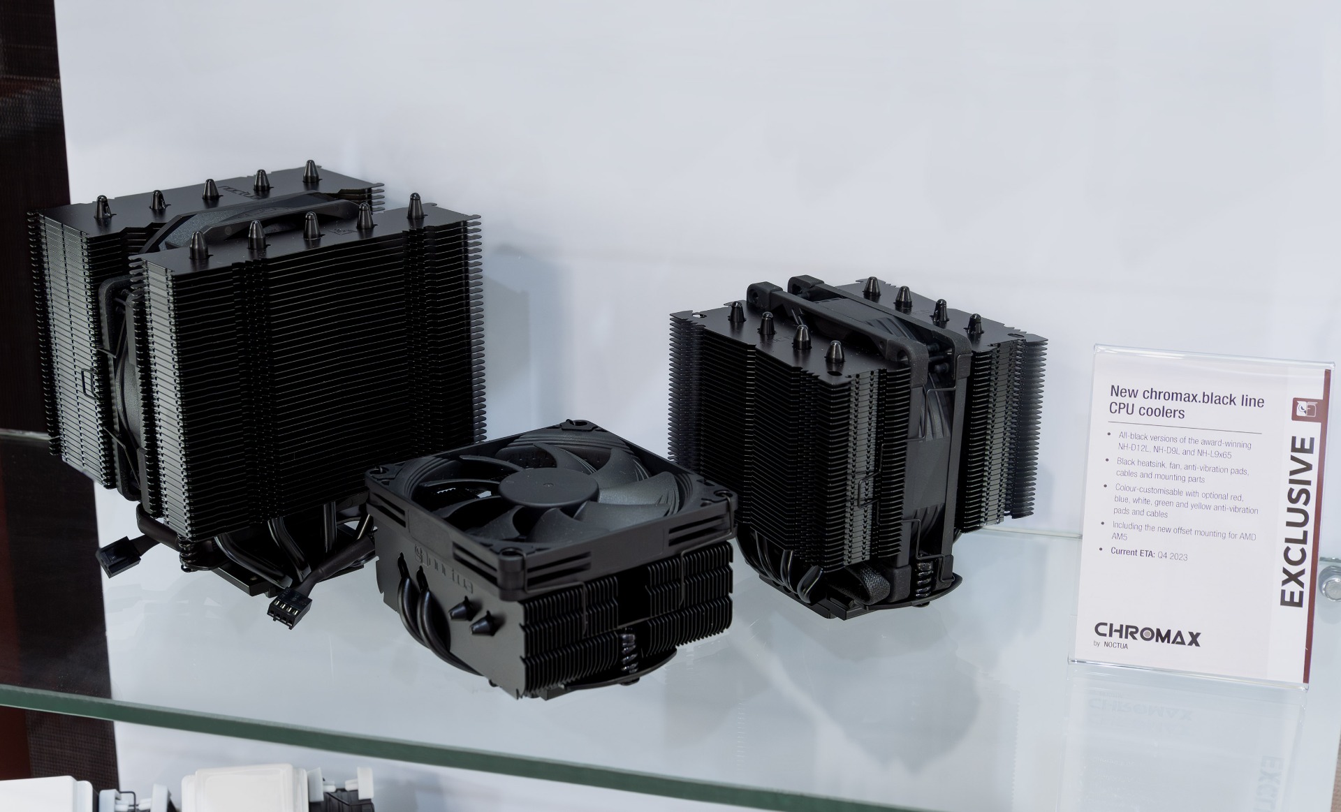 Other items on display included chromax.black versions of the award-winning CPU cooler models NH-D12L, NH-D9L and NH-L9x65, which are scheduled for release in Q4 2023, as well as 14cm and 9cm coolers for AMD’s next-gen Threadripper processors, which Noctua intends to introduce in October.