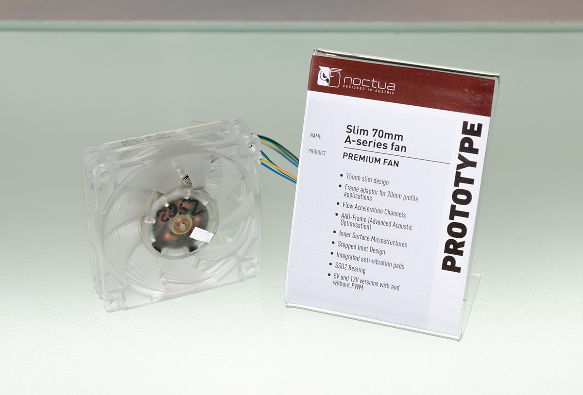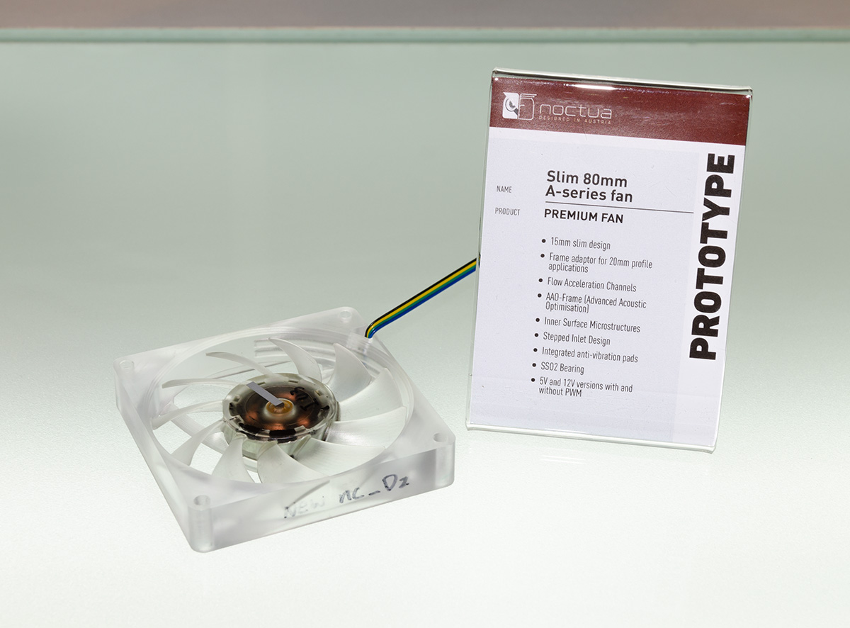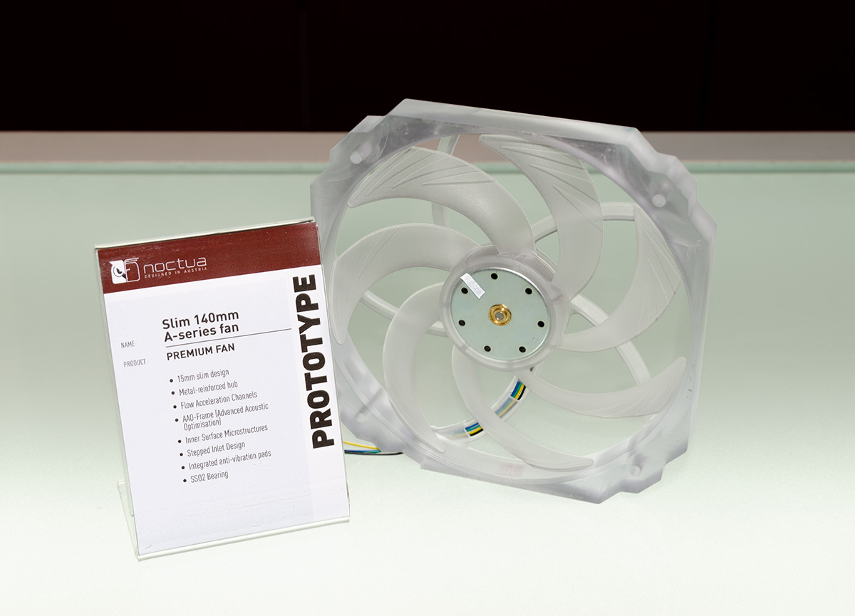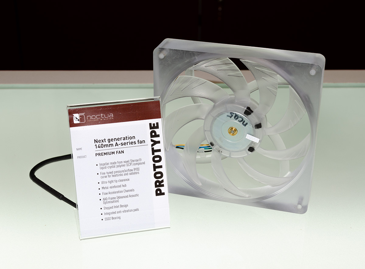 In addition to the next-generation NH-U12 cooler, Noctua displayed an incremental performance update to the existing NH-L9x65 (scheduled for Q1 2019) and a future 140mm C-type cooler (no ETA as of yet) as well as one single tower and one dual tower prototype that both aim to further improve the performance of the award-winning NH-D15. Which of the two will be released in 2019 is yet to be determined based on further performance optimisations.