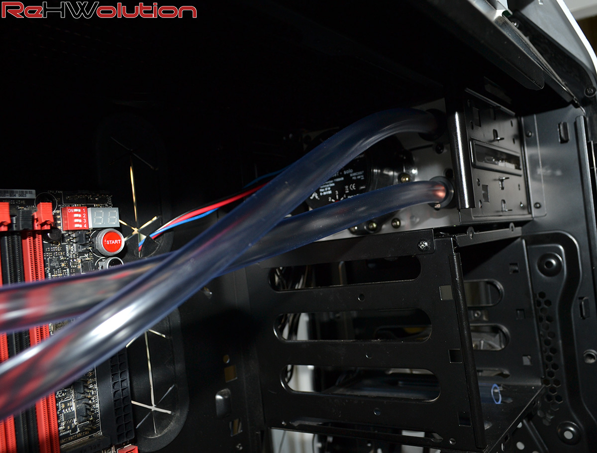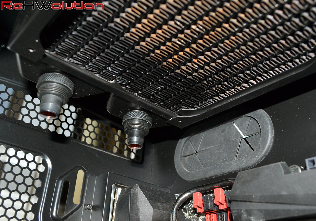 Il waterblock è compatibile con qualsiasi CPU in commercio e non, che si tratti di Intel o di AMD. La vaschetta e il radiatore potrebbero però causare problemi nell’installazione qualora aveste un case con soli 2 bay da 5.25″ (come il Graphite 780T utilizzato per la mia piattaforma). Come visibile dalle foto, infatti, ho dovuto installare la vaschetta in “ghetto style” per far sì che il radiatore entrasse correttamente sul tetto del case. Inoltre, le predisposizioni del radiatore sbattono con la struttura del telaio superiore, ma quest’ultima “incompatibilità” non rappresenta un problema nel montaggio: il radiatore si monterà comunque, ma sarà inclinato di 2-3 mm.