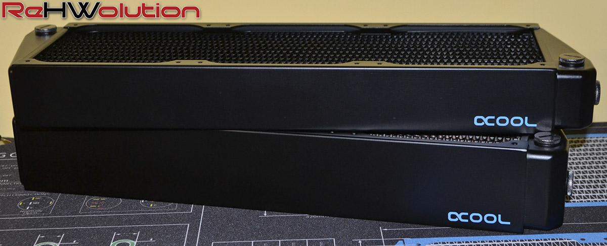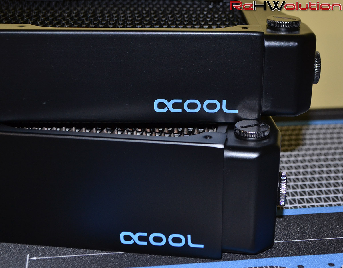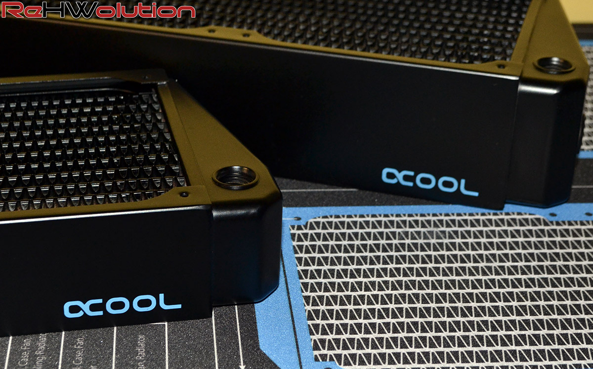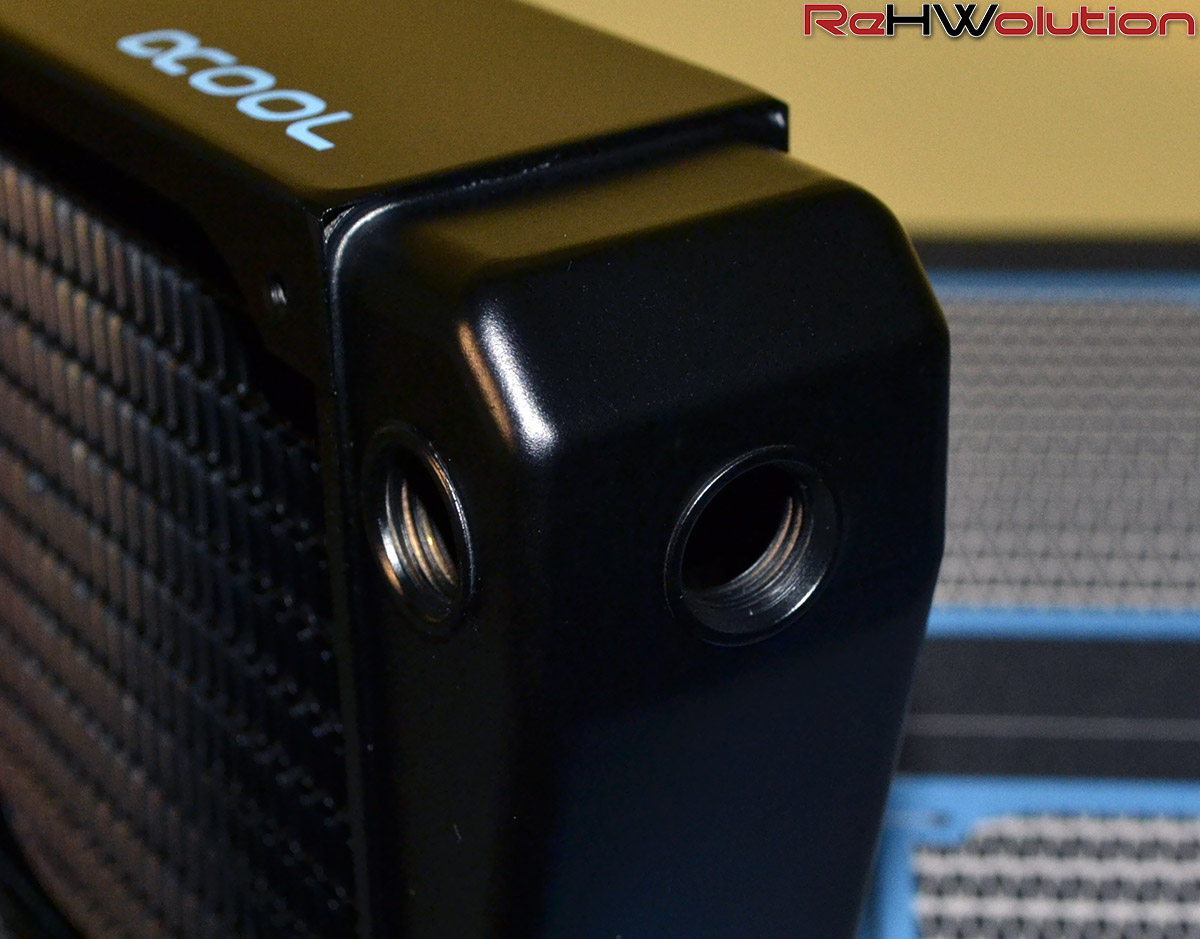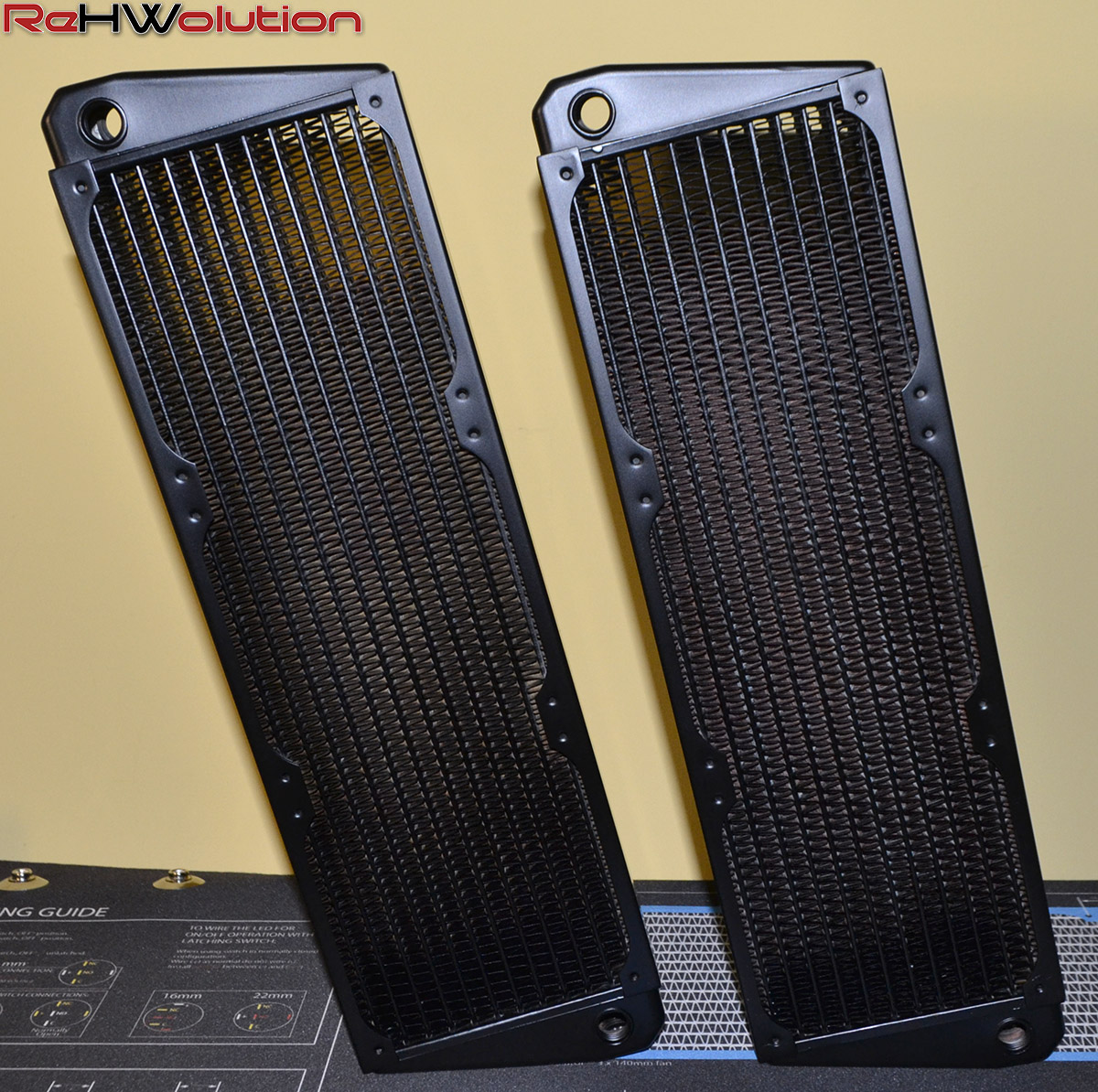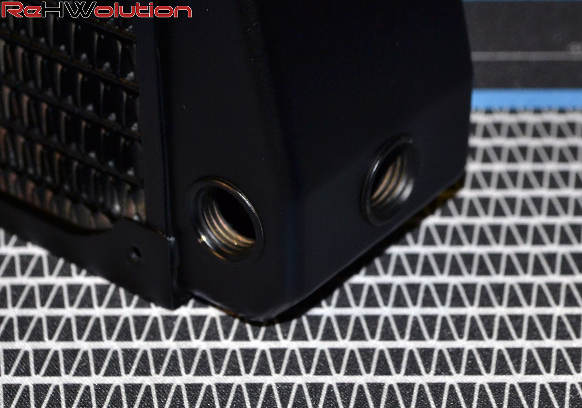 Le outlets sono presenti su ambo i lati del radiatore, con un’ulteriore outlet sui tank finali (le estremità dei radiatori) da utilizzare con sensori, raccordi o qualsiasi cosa vogliate collegare al vostro loop. Entrambi i radiatori, infine, sono completamente in rame, massimizzando il trasferimento di calore con l’aria spostata dalle ventole.
