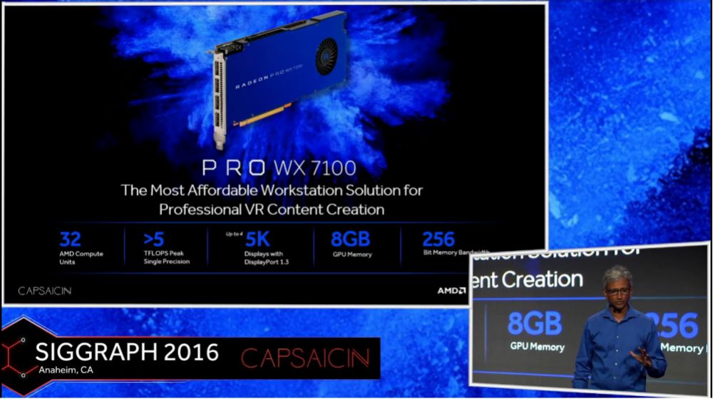 • La Radeon Pro WX 7100 è il modello piu’ potente, può gestire flussi di lavoro esorbitanti nel settore dei media, e si coniuga con le workstation di AMD per creazione di contenuti VR a livello professionale. Le caratteristiche tecniche sono le seguenti: 32 AMD Compute units, 5TFLOPS, 8GB di memoria video e bus da 256bit, il tutto per circa 1000 dollari.