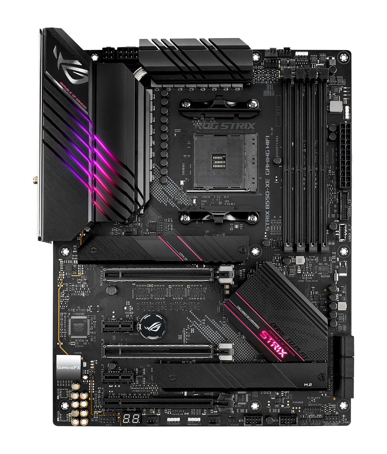 Inoltre, Strix B550-XE Gaming include connettività Intel Ethernet 2.5G, Intel WiFi 6 AX200, sei slot M.2 (quattro sulla scheda Hyper M.2 x16) e BIOS FlashBack.