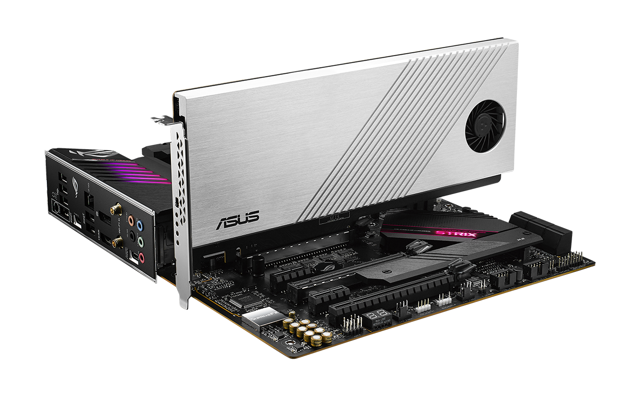 Strix B550-XE Gaming offre un sistema di raffreddamento completo che include dissipatori VRM a raffreddamento attivo. Sono presenti dissipatori di calore dedicati anche per i doppi slot M.2, nonché una scheda Hyper M.2 x16 Gen 4 in bundle.
