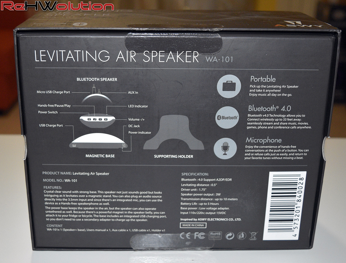 ASWY ONDO AIR Levitating Bluetooth Speaker: specifiche tecniche–>
