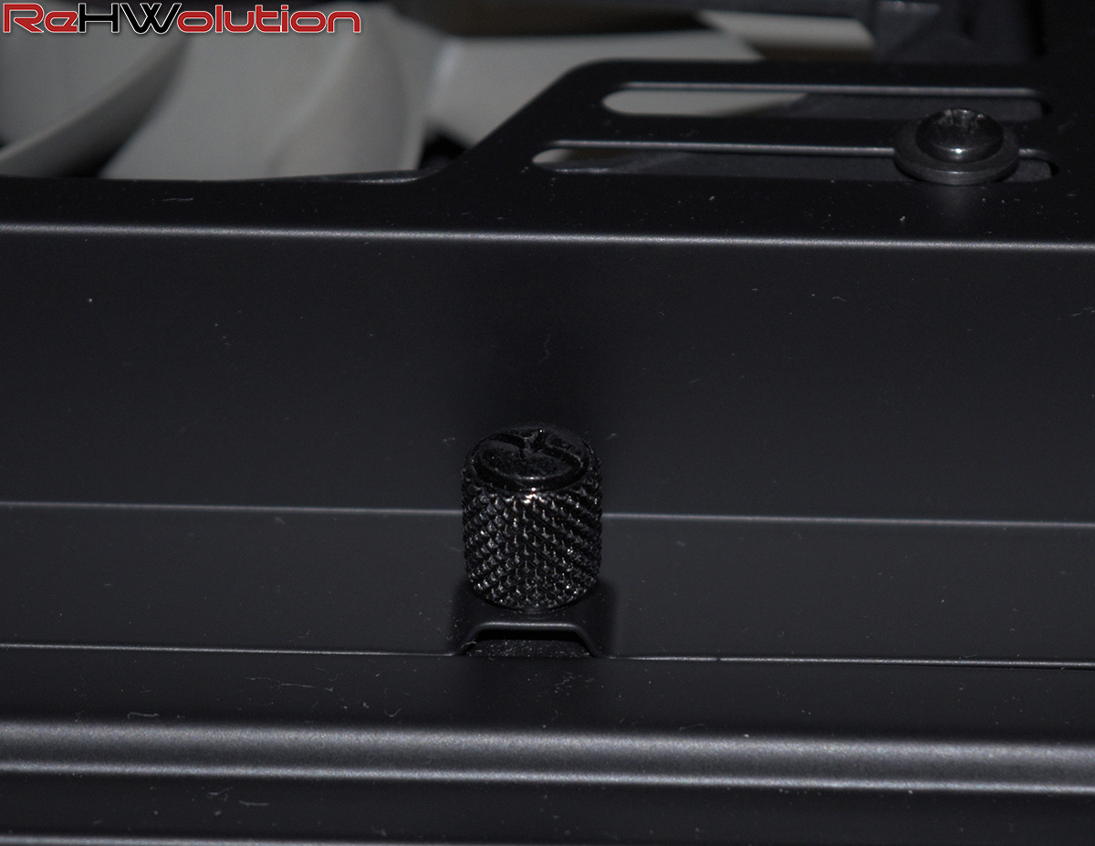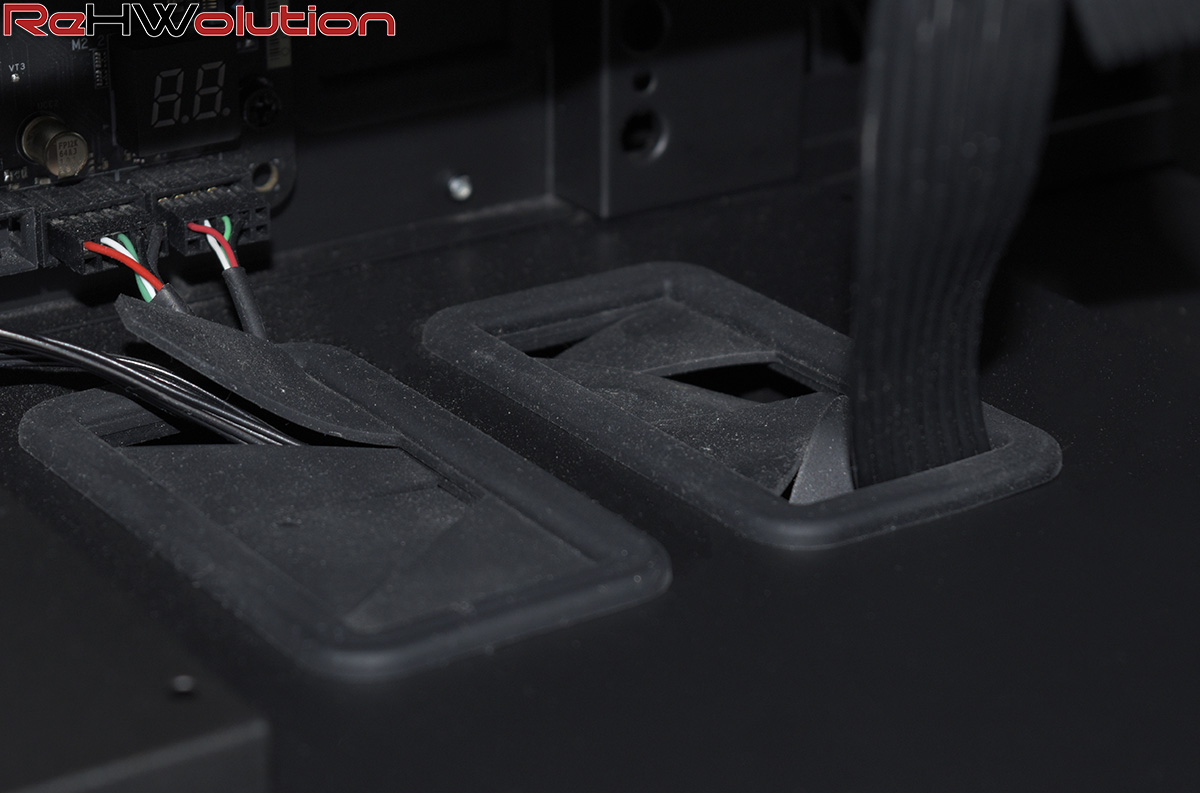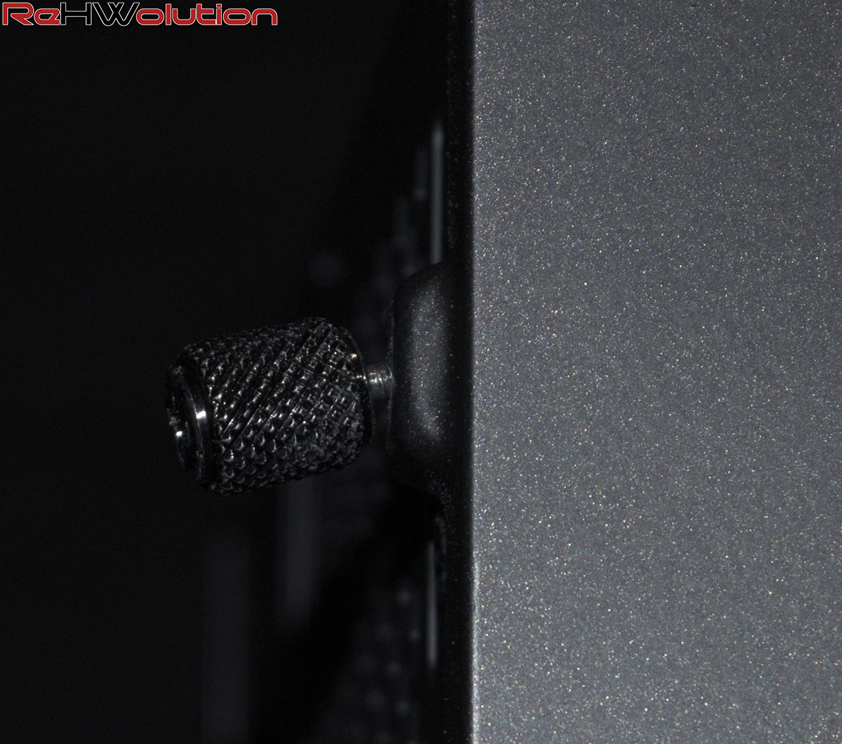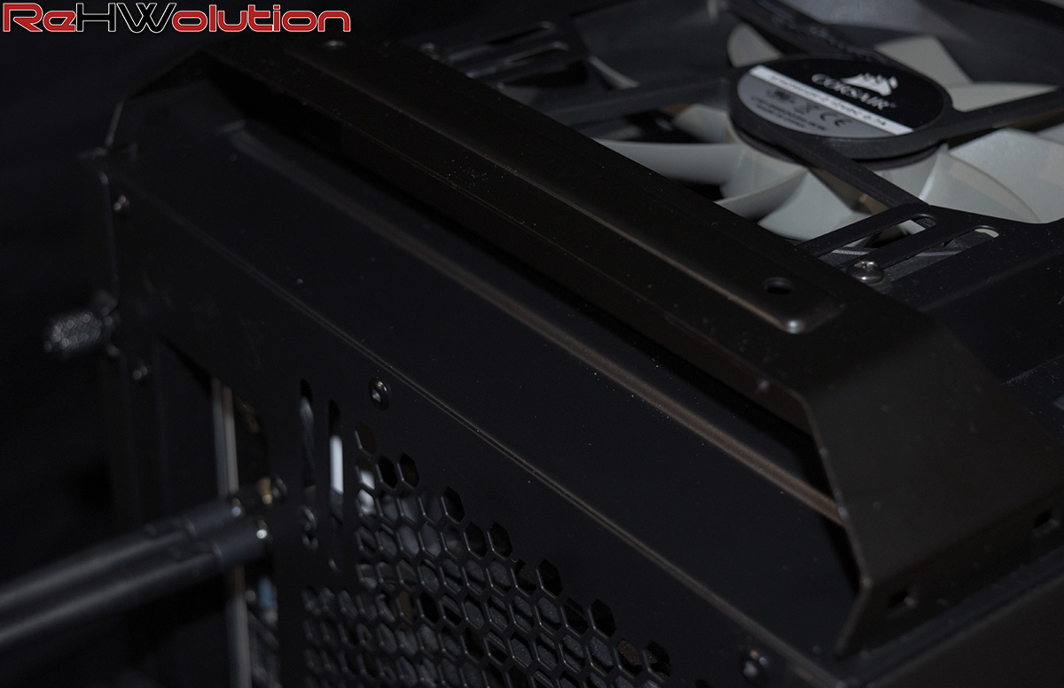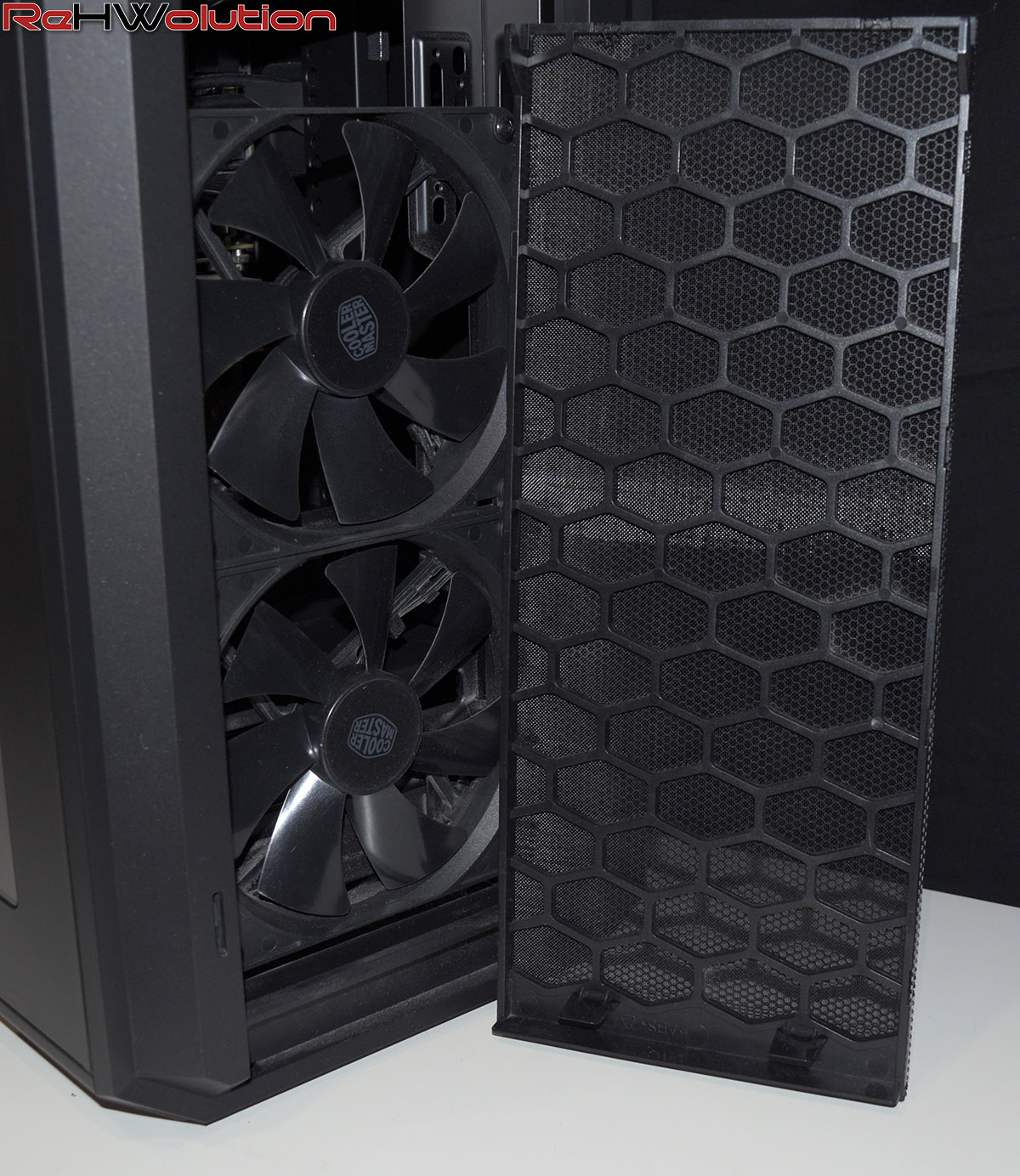 La cover frontale, oltre “coprire” i bay da 5.25″ rendendo l’estetica del case più uniforme, è ricoperta da materiale fonoassorbente, che riduce così i rumori prodotti dalle ventole installate nella parte frontale, oltre ad evitare che i rumori “rimbombino” sulla superficie spigolosa di esso.