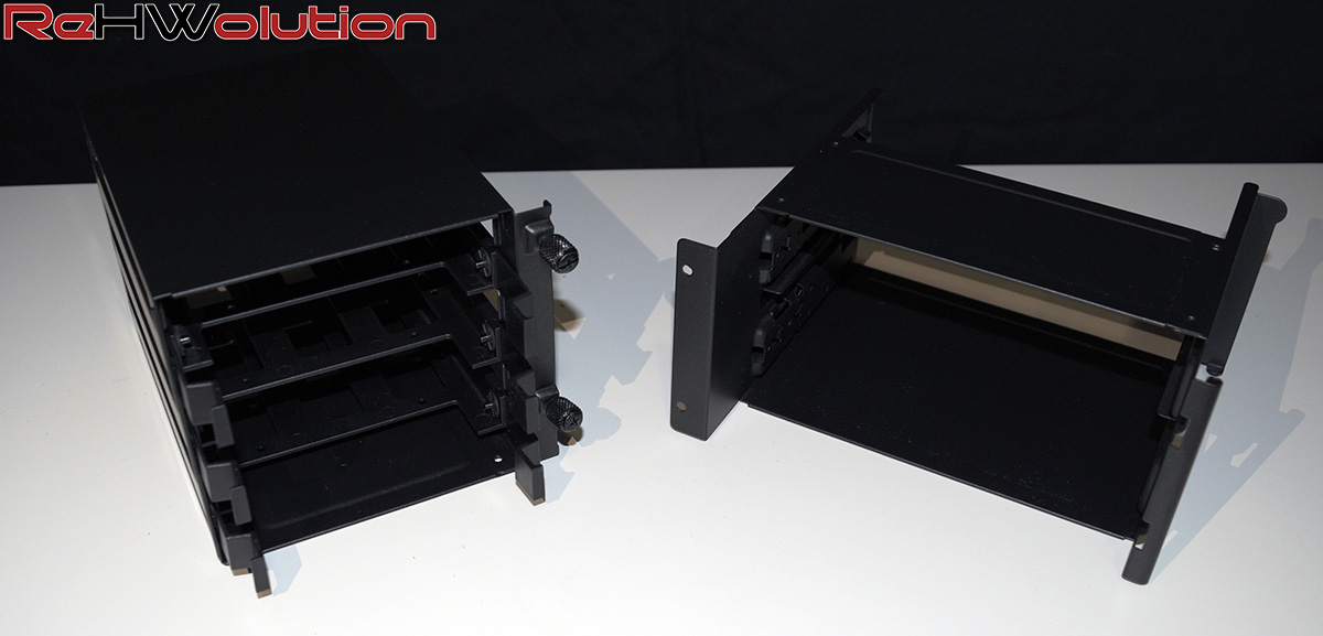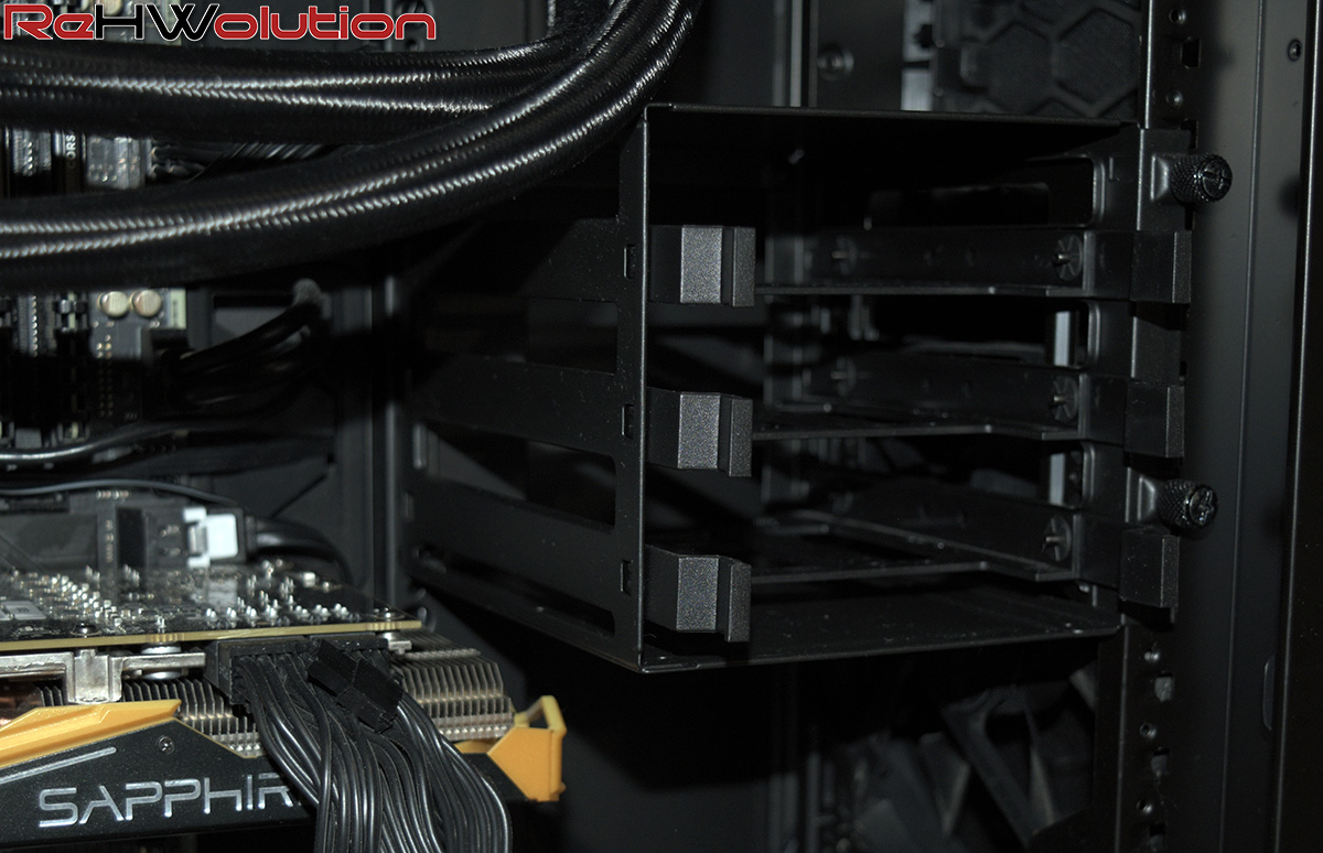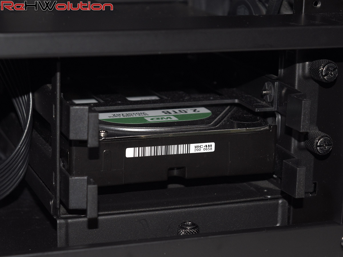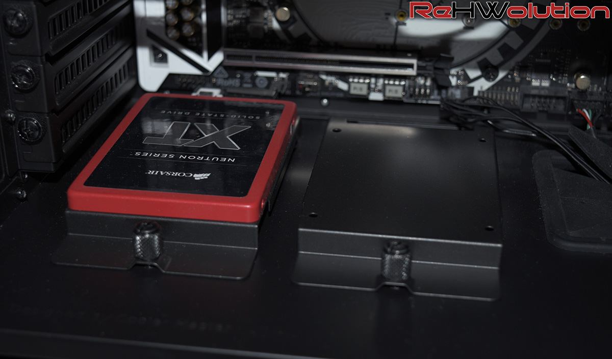 Tramite gli accessori forniti, è possibile installare fino ad un massimo di 5 HDD da 3.5″ e 2 HDD da 2.5″ tramite i bracket a installazione rapida che troviamo sul fondo del case, mentre altri 2 SSD sono installabili nel retro della mainboard tray.