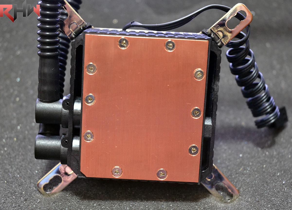 Il dissipatore è dotato di un’unità che funge sia da pompa che da waterblock; essa è di dimensioni compatte, ed è fornita di due sistemi di montaggio, uno per ogni tipo di piattaforma (Intel o AMD). Una volta installato, un LED di colore blu, al pari del “fratello maggiore”, si illumina per notificare il funzionamento dell’unità.