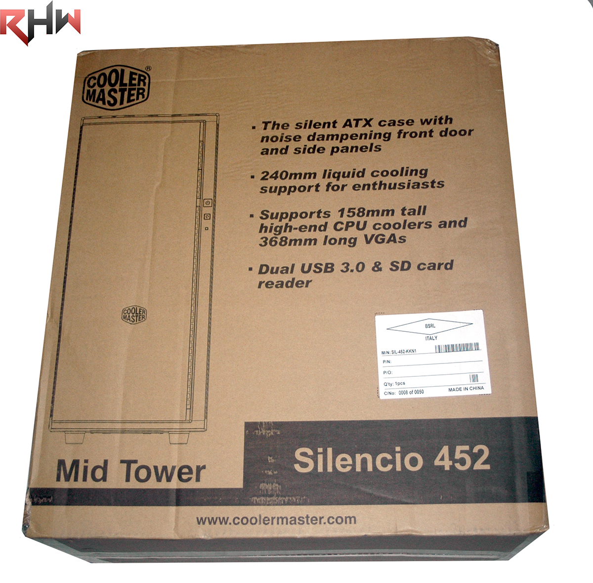 Introduzione: Cooler Master–> Cooler Master, azienda nata 21 anni fa con lo scopo di diventare leader nel settore di soluzioni di raffreddamento, ha investito sempre di più nella progettazione e studio di nuove soluzioni tecniche. La sua gamma di prodotti varia dalle ventole ai componenti come chassis, alimentatori, AIO, ecc.. Il nuovo arrivato, cosi come gli altri modelli della famiglia a cui appartiene, è strettamente pensato per ridurre i rumori provocati dai componenti hardware che va ad infastidire l’utente durante le fasi di gaming,musica o per il normale utilizzo quotidiano. Grazie all’impegno di tutta l’azienda, Cooler Master ha dato così vita al Silencio 452, un cabinet rivestito da pannelli fonoassorbenti che lo rendono estremamente silenzioso. Buona lettura!