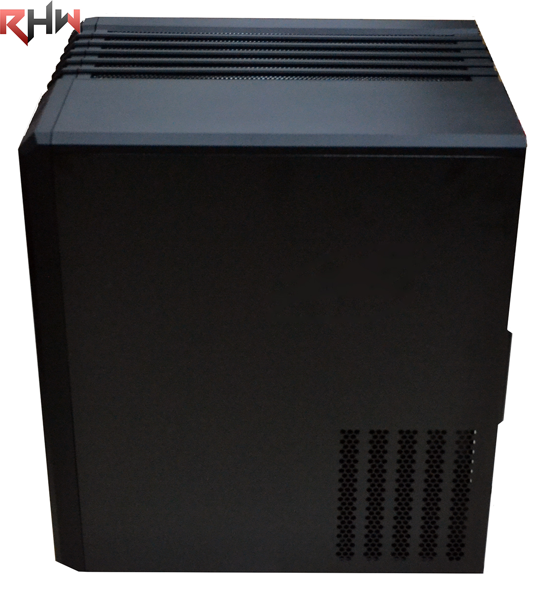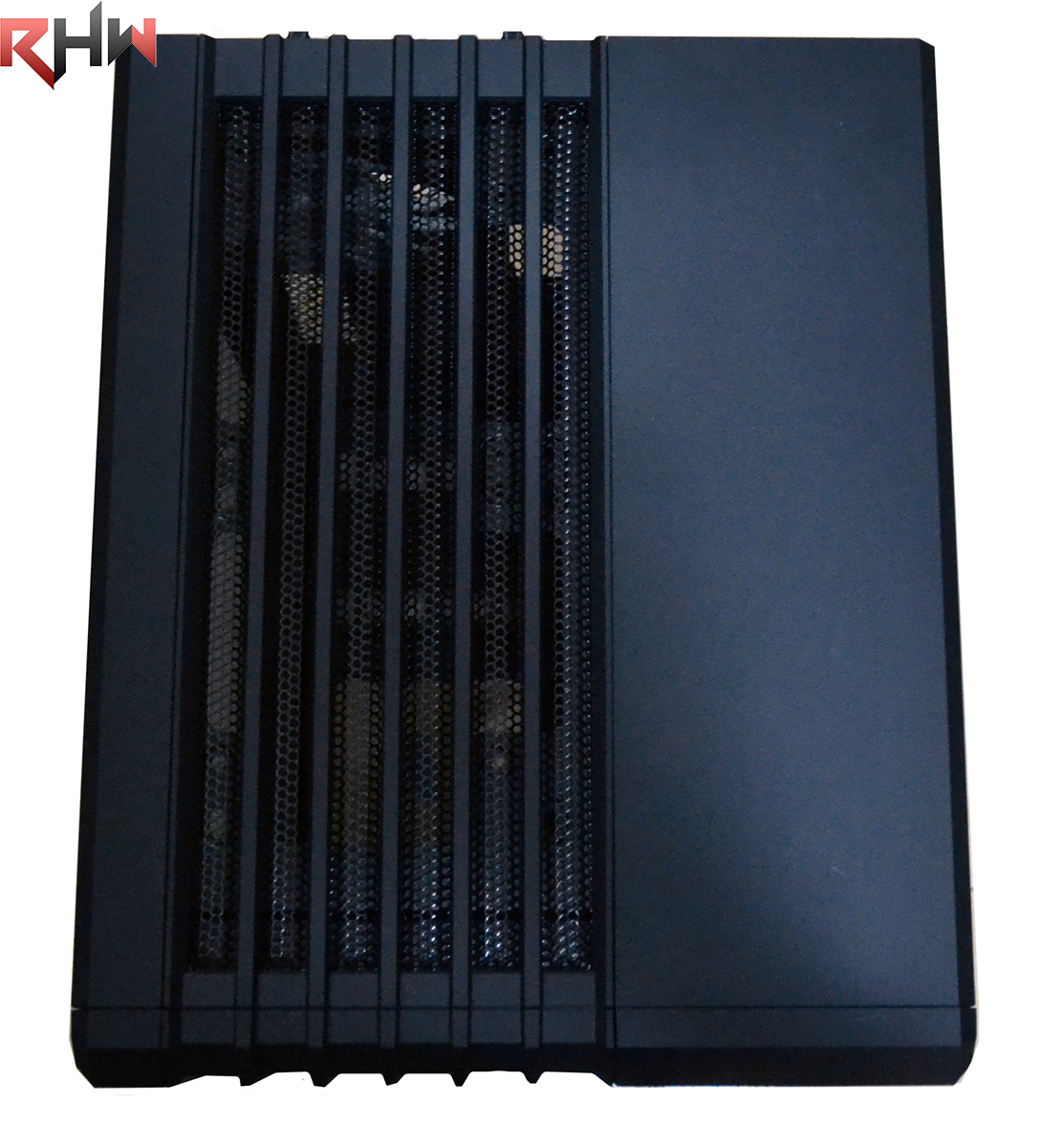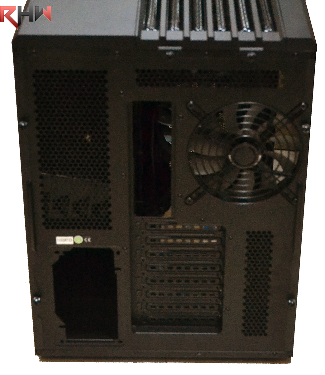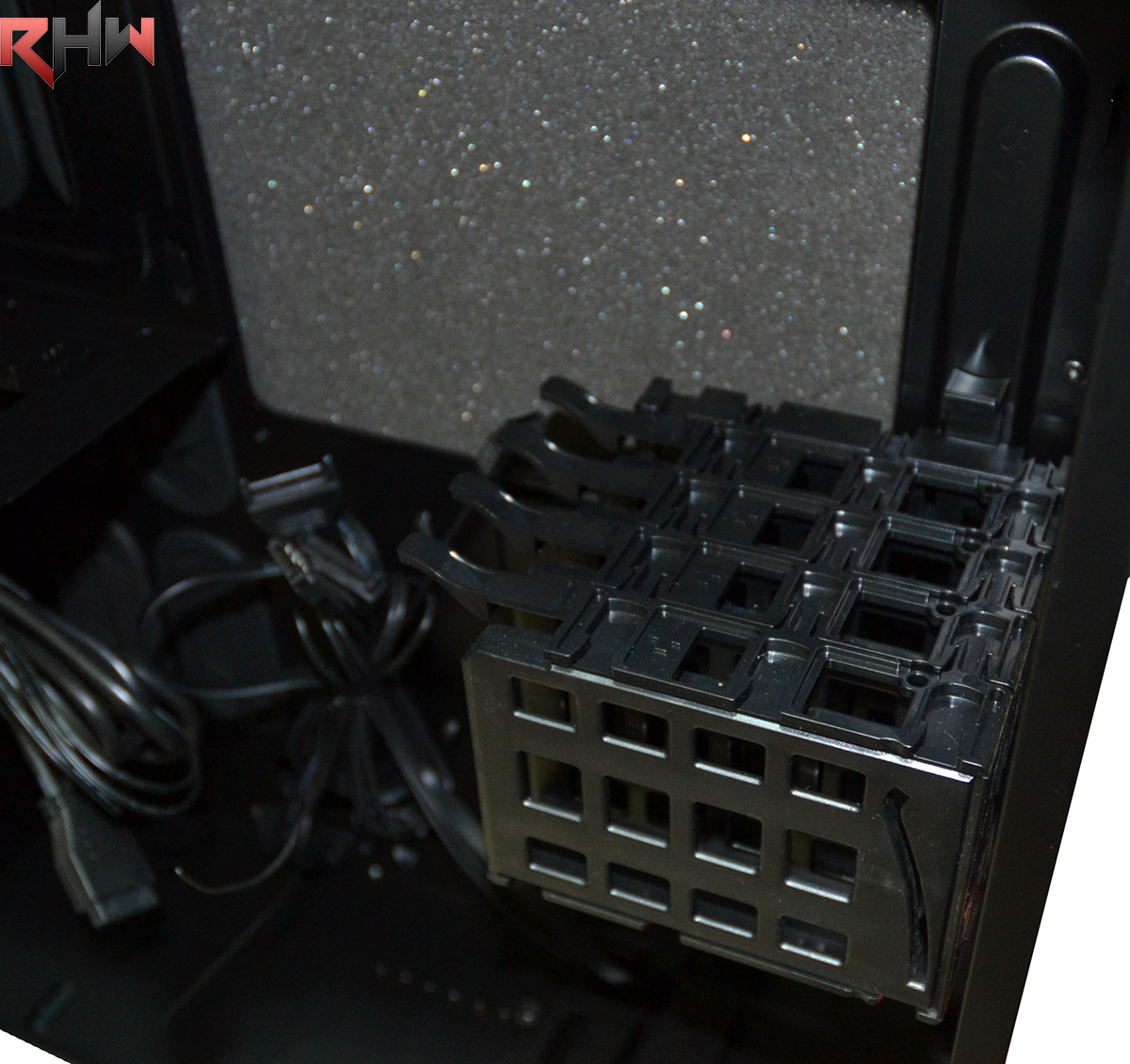 La sezione hardware presenta il supporto a schede madri fino al formato ATX, a partire dal minuscolo mini ITX, con 8 slot per schede di espansione e due bay di tipo hot-swap da 3.5″ posizionate sul fondo del suddetto lato. Nella parte sinistra, è presente la predisposizione per il montaggio di alimentatori formato ATX di qualsivoglia lunghezza, oltre ad una struttura per 4 unità da 2.5″ in plastica di tipo modulare, che per nostra sfortuna è giunta in redazione leggermente danneggiata, in seguito probabilmente ad un trasporto non proprio “gentile”.