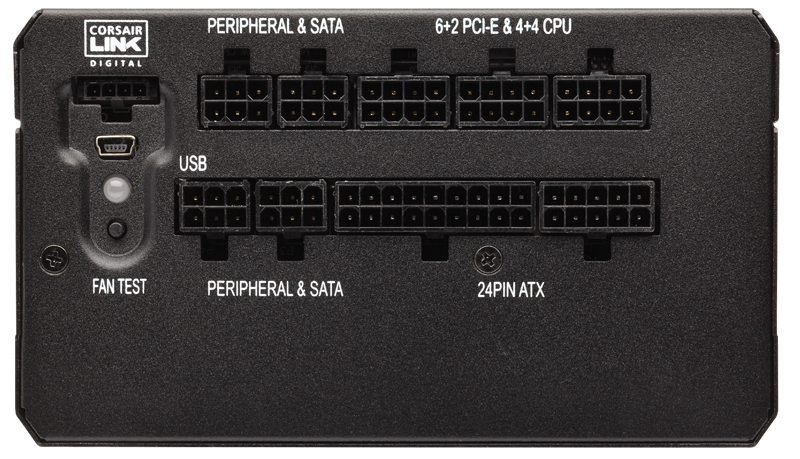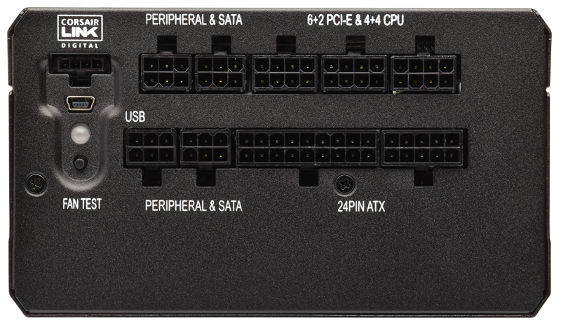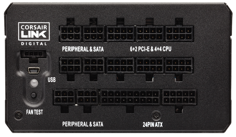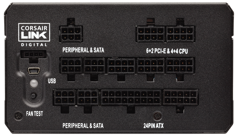 - Tecnologia Link digitale Corsair: l’applicazione avanzata per desktop permette agli utenti di monitorare e registrare la velocità della ventola, i voltaggi e il consumo energetico, di controllare la velocità della ventola e di passare dalla modalità multi rail sulla linea a +12 V alla modalità single rail