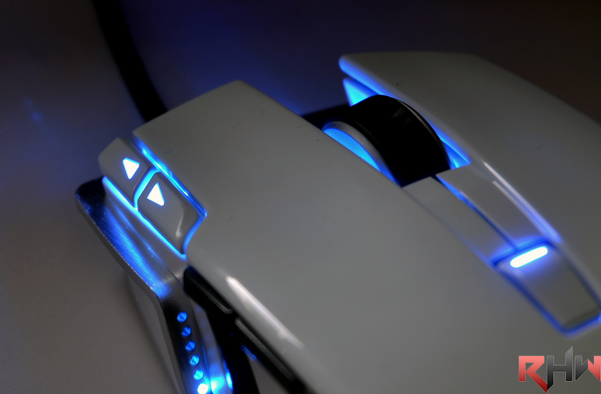 Il sensore Avago9800 da ben 8200DPI fa il suo lavoro, non mostrando incertezze nemmeno alle risoluzioni inferiori alla massima. Il set di tasti disponibili sul mouse, in un primo periodo di utilizzo, possono risultare scomodi, ma presa l’abitudine torneranno senz’altro utili, che vogliate associarvi il lancio di un programma o di una combinazione di tasti o perché no, il casting di una spell nel vostro MMORPG preferito.