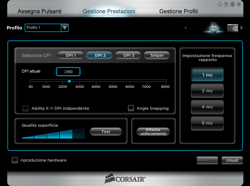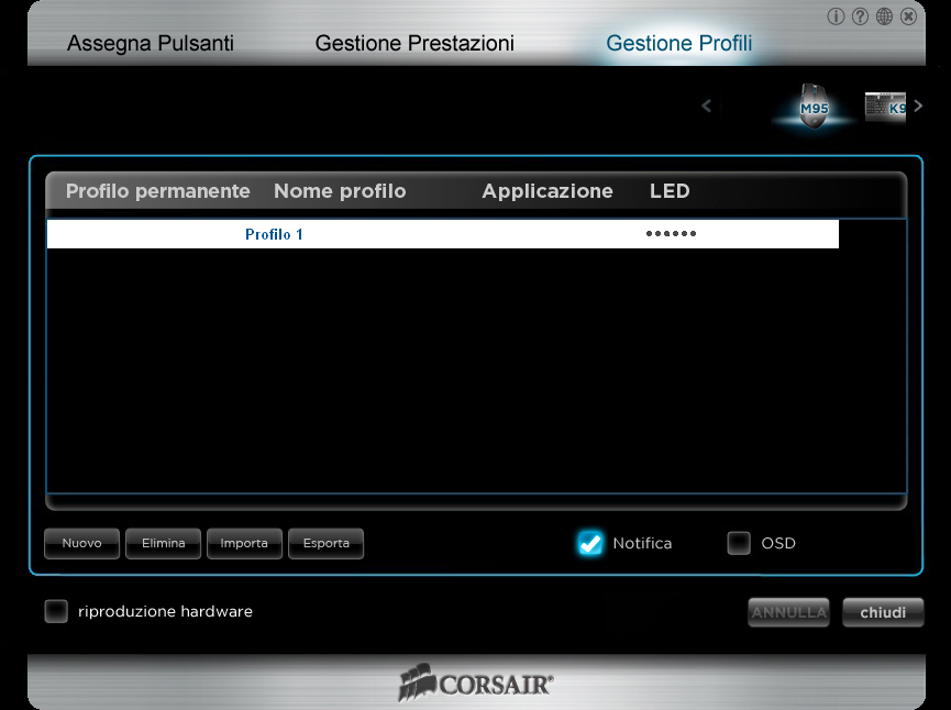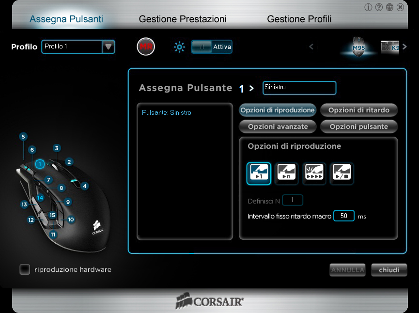 Di seguito, una serie di immagini del Software di gestione del Corsair M95: