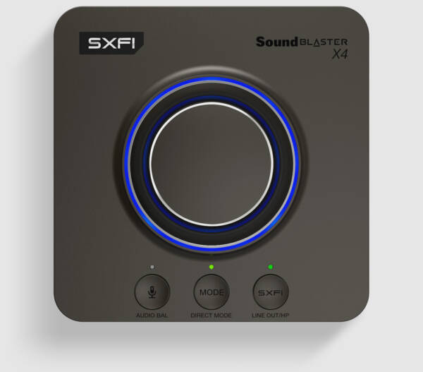 Sound Blaster X4 offre agli utenti un sistema di controlli più semplice e una manopola di rotazione dal design elegante che elevano la scheda audio se paragonata al predecessore. È inoltre dotata di pulsanti dedicati per il bilanciamento audio, la selezione della modalità audio, la modalità Super X-Fi, nonché di un altoparlante (Line-out) e uno switch delle cuffie per passare da un dispositivo all’altro.