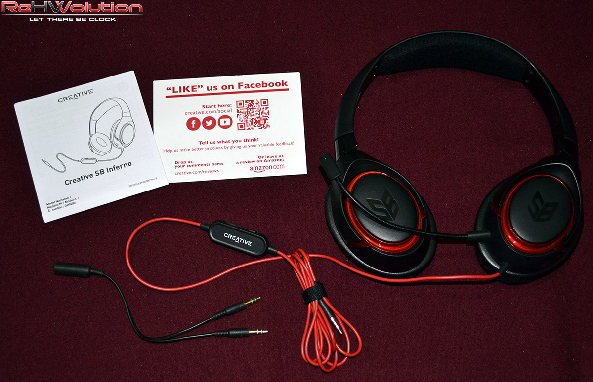 Il Creative SB Inferno è un headset dotato di drivers da 40 mm con un Frequency Response che spazia dai 20Hz fino ai 20kHz, con un microfono che invece copre, grazie al condensatore che utilizza, una frequenza che va da 100Hz fino a 15kHz ed una sensibilità che arriva a -40dBV/Pa, equivalenti a circa 97dB(A) in una scala più comune. La forma dell’arco che poggia sulla testa è particolarmente insolita: invece di un arco di circonferenza, esso sembra più assomigliare ad un rettangolo coi bordi arrotondati, al centro del quale è presente un cuscinetto in gommapiuma che si occupa di scaricare il peso dell’headset (davvero contenuto, tra l’altro) sulla testa.