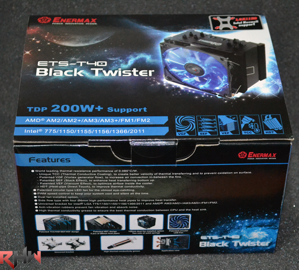 Enermax ETS-T40 Black Twister: specifiche tecniche–> Di seguito, la tabella delle specifiche tecniche del dissipatore, ulteriori informazioni sono consultabili in versione integrale sul sito ufficiale del produttore (Enermax):
