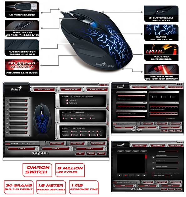 Genius, in data odierna, aggiorna la propria linea di periferiche da gioco, con il mouse X-G510, periferica con uno stile aggressivo e con un corpo in gomma per offrire un maggior grip anche nelle fasi di gioco più spinte. Il Genius X-G510 è dotato di sensore laser da 2000 dpi con la possibilità di regolarli tramite il programma di gestione. Inoltre è dotato di 6 tasti e una memoria interna in grado di memorizzare fino a 3 profili diversi per un totale di 21 macro differenti.