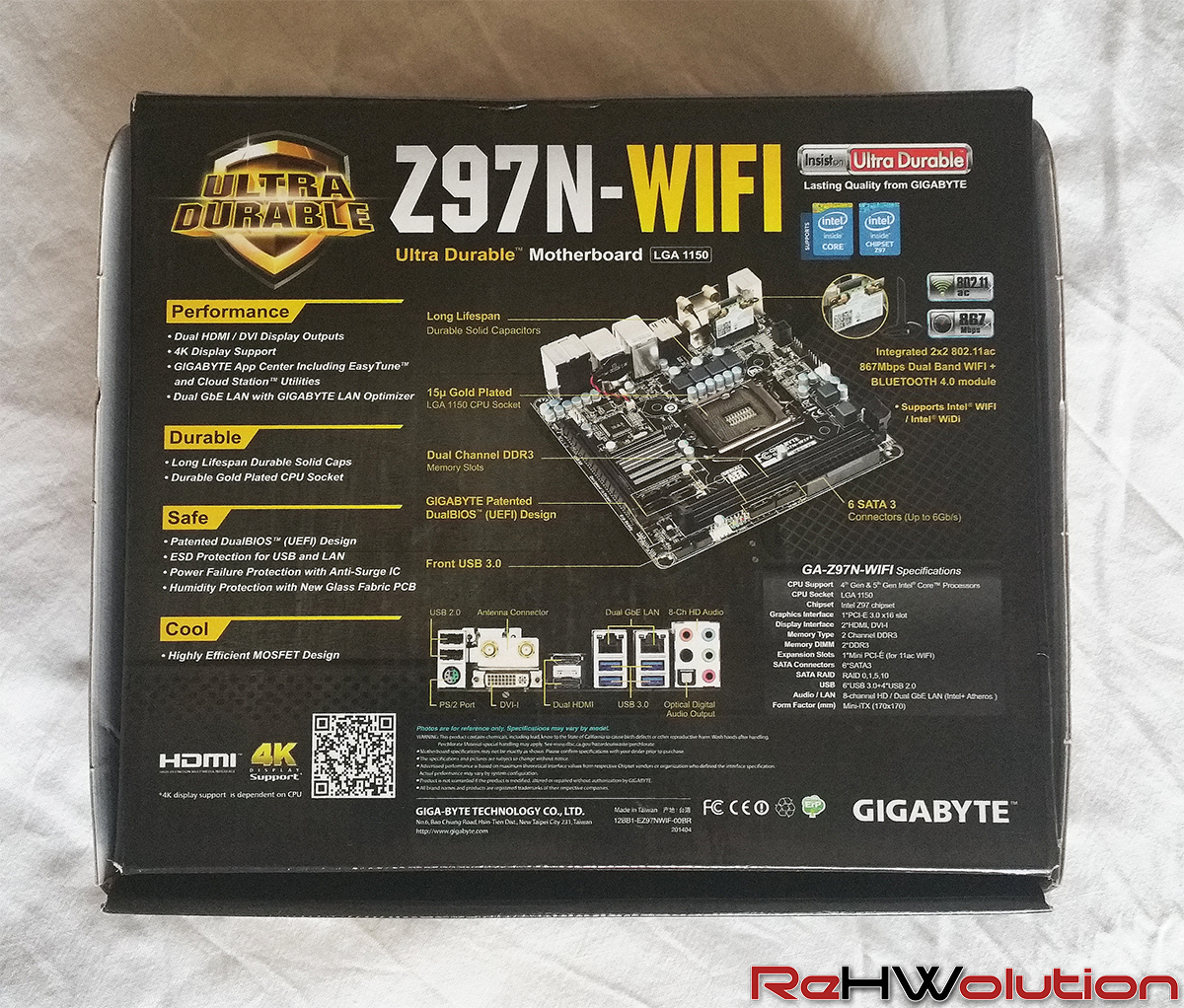 Ancora una volta, noi di ReHWolution, abbiamo l’onore di testare un’altra motherboard griffata Gigabyte, e dopo la X99M Gaming 5, soluzione prettamente indicata per uso gaming, quest’oggi sul banco di prova abbiamo la Z97N-WIFI, una proposta appartenente alla lineup Z97 indirizzata principalmente per sistemi compatti da salotto con spiccate features proprietarie della casa taiwanese, come lo standard Ultra Durable, il quale certifica da anni l’impiego di componenti di altissima qualità.