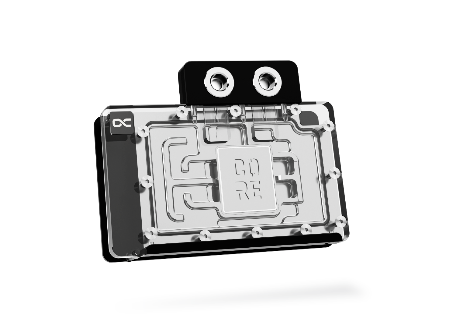 La placcatura cromata sul dissipatore in rame, invece della tradizionale placcatura in nichel, offre una finitura più brillante, liscia e durevole. Un logo Core è posizionato sopra la jetplate, conferendo un look distintivo e premium, e il design del cooler è sia funzionale che esteticamente piacevole, bilanciando prestazioni e eleganza.