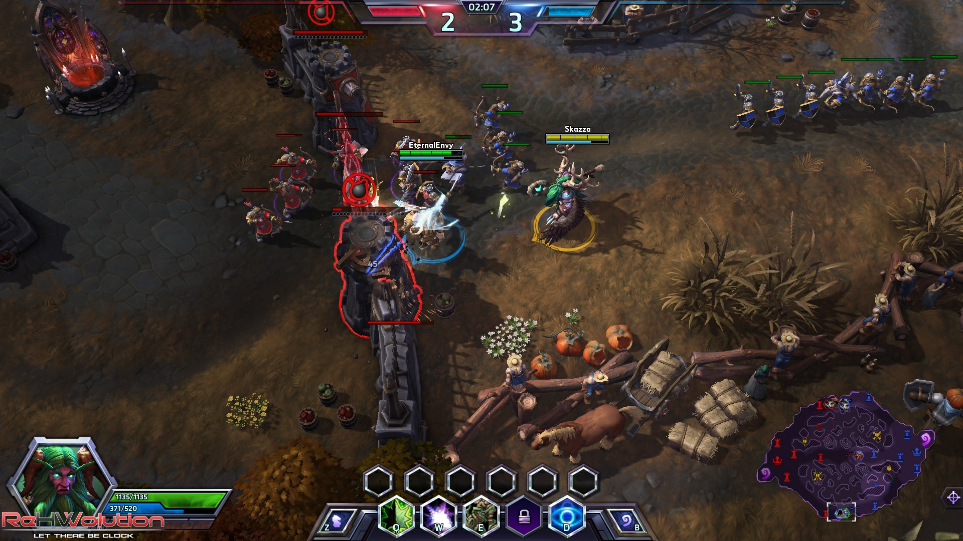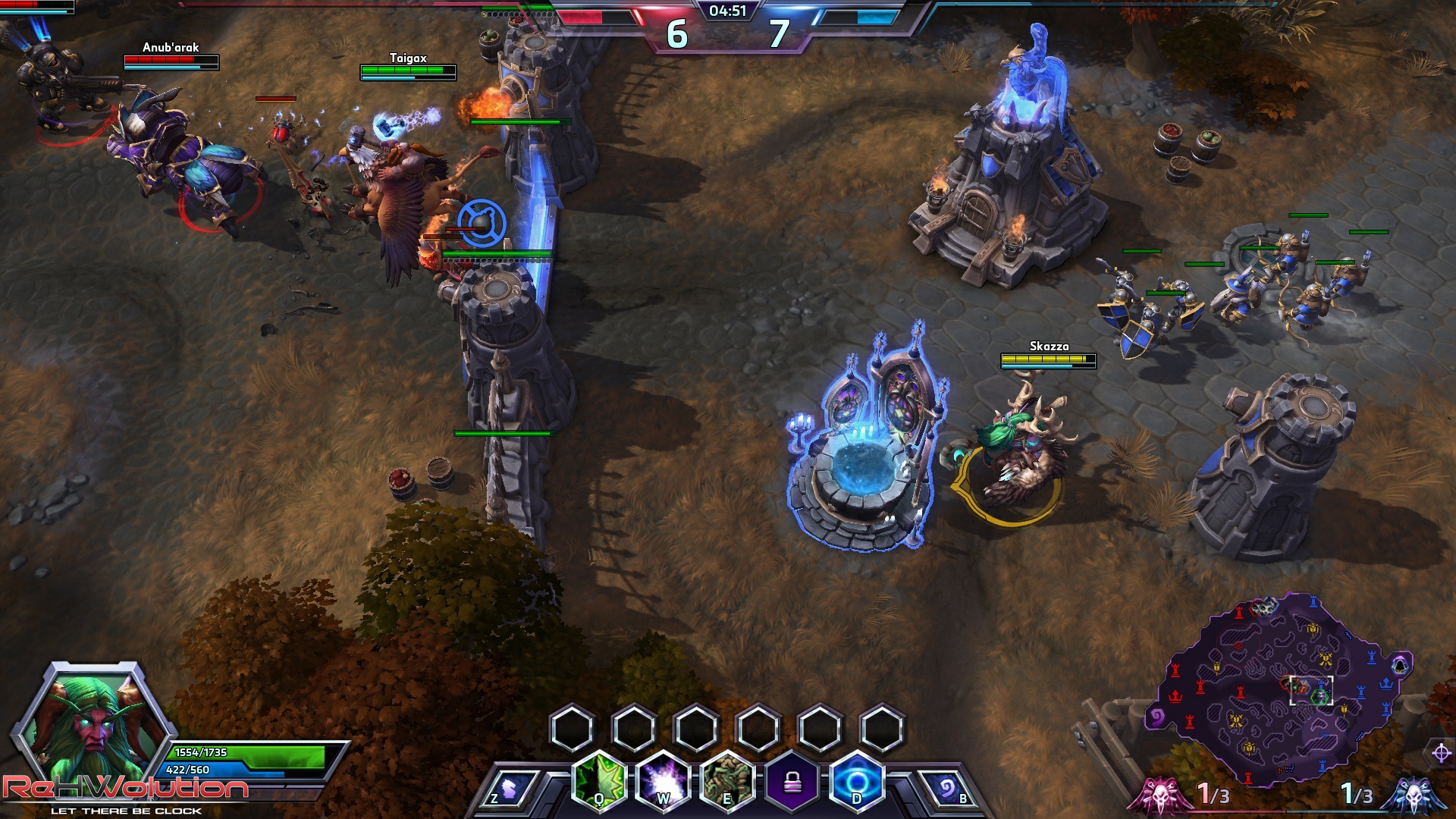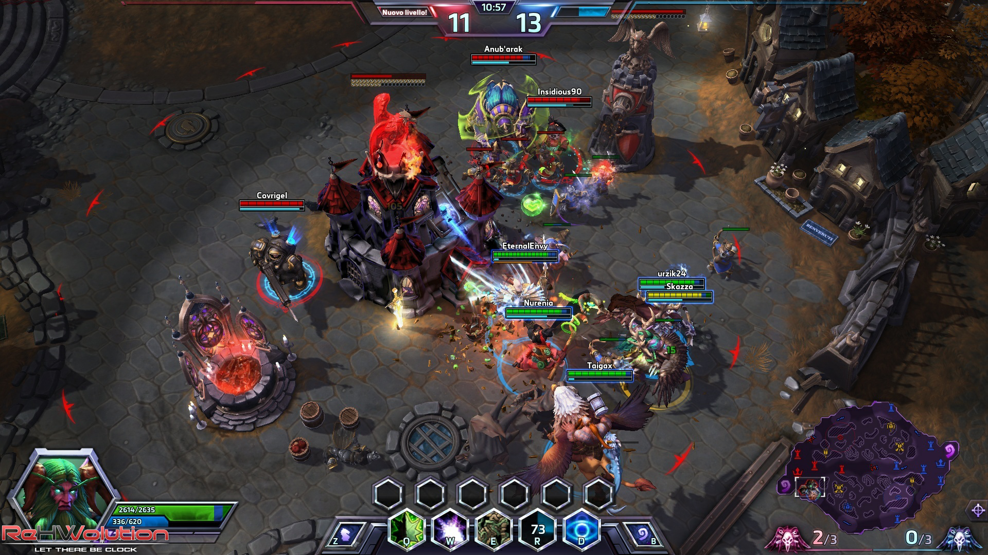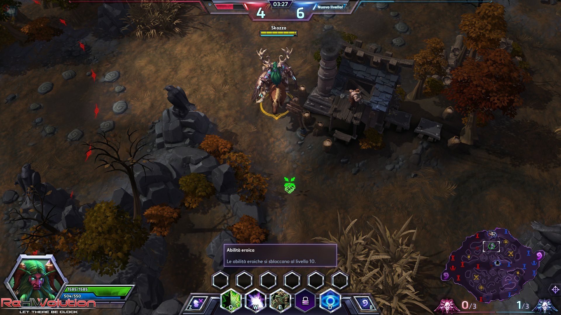 Le prime tre abilità (Q-W-E) in HoTS saranno già disponibili dal primo livello, mentre le Ultimate (sarà possibile scegliere tra due a disposizione) verranno sbloccate al livello 10. La presenza delle abilità base, che saranno poi potenziate dai talenti nel corso della partita, già dai primi istanti di gioco permette, come già detto, azioni frenetiche già da subito, con “gank” in posizioni chiave dopo un minuto/due.