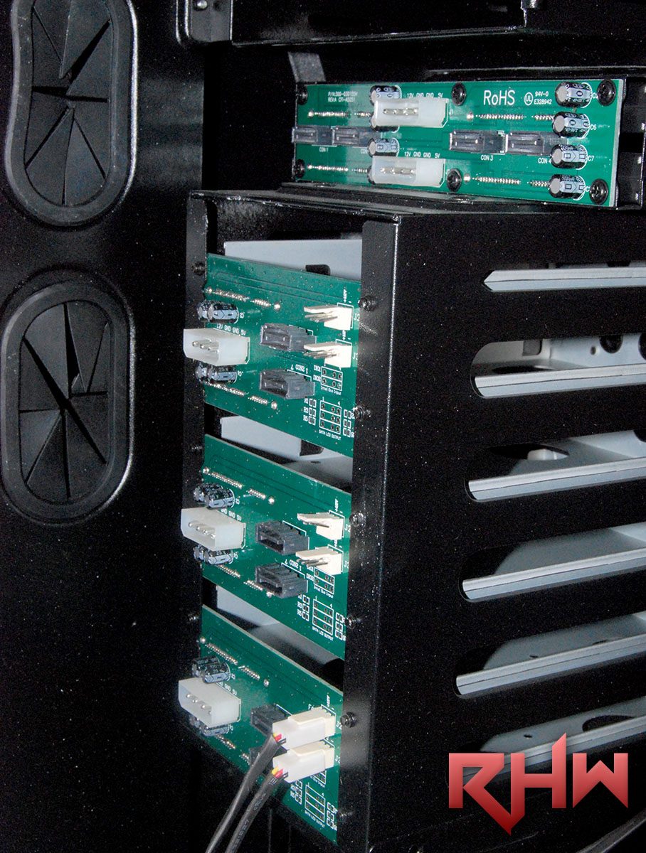 I pannelli di alimentazione dei 6 bay da 3,5” differiscono dagli altri grazie ai 6 connettori per le ventole, di cui 2 sono occupati dalle ventole anteriori contenute nel bundle.