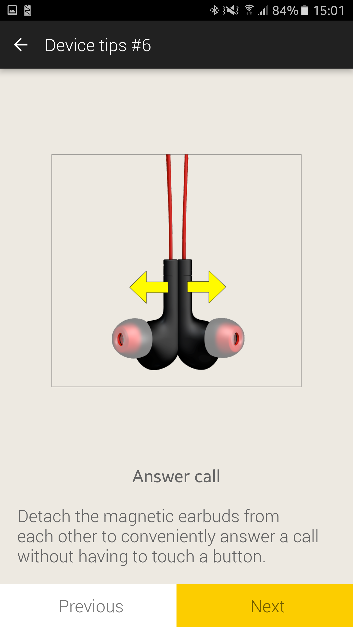 Una volta indossato l’archetto sul collo, le Jabra Halo Smart diventano delle classiche cuffie Bluetooth, dotate però di alcune particolarità: come visibile infatti dai “tips” suggeriti da Jabra Assist, l’headset dispone di alcune features davvero interessanti, come la possibilità di attaccare magneticamente gli earbuds tra di loro o sull’archetto. In particolare, facendo “attaccare” gli earbuds insieme, fermerete la musica o potrete agganciare la chiamata in corso, e basterà staccarli per rispondere ad una chiamata in arrivo o per far ripartire la musica.