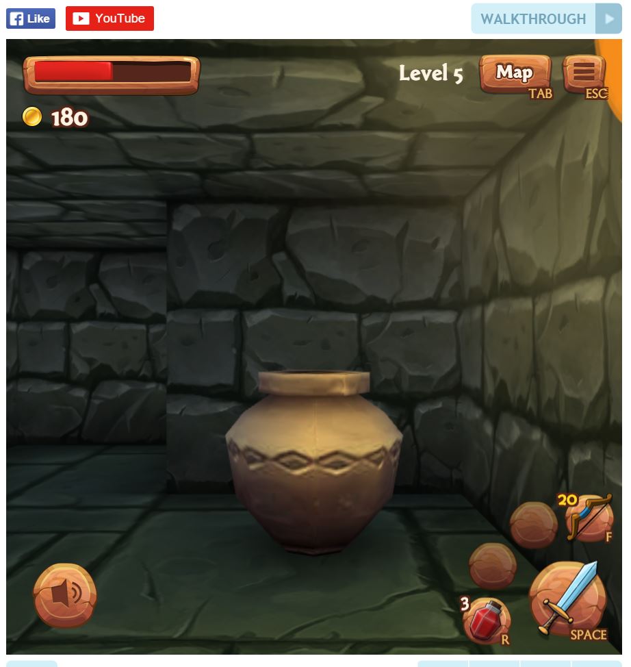 Troveremo consumables (frecce per l’arco o bombe) nei vari vasi da distruggere (in pieno stile Legend of Zelda). Troveremo inoltre, di tanto in tanto (ndr, sempre, a partire dal livello 5), delle chiavi per aprire cancelli che ci permetteranno di avanzare nel livello:
