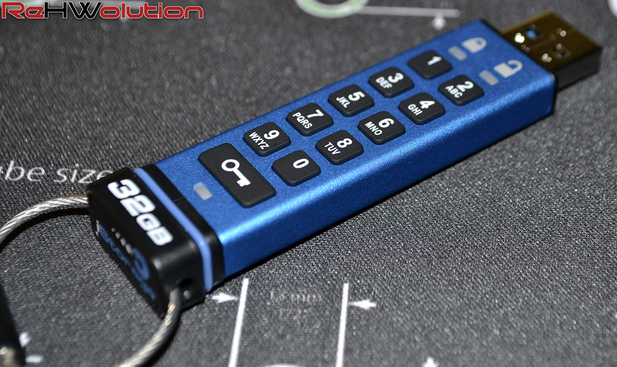 La pendrive presenta dimensioni generose in lunghezza (per consentire l’utilizzo di un numpad a 10 tasti più il tasto assegnato alle operazioni di blocco e sblocco), ma il peso è contenuto e il drive non ostruisce periferiche presenti in porte USB adiacenti.