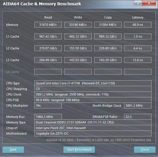 Test computing: AIDA64 Memory Benchmark–>