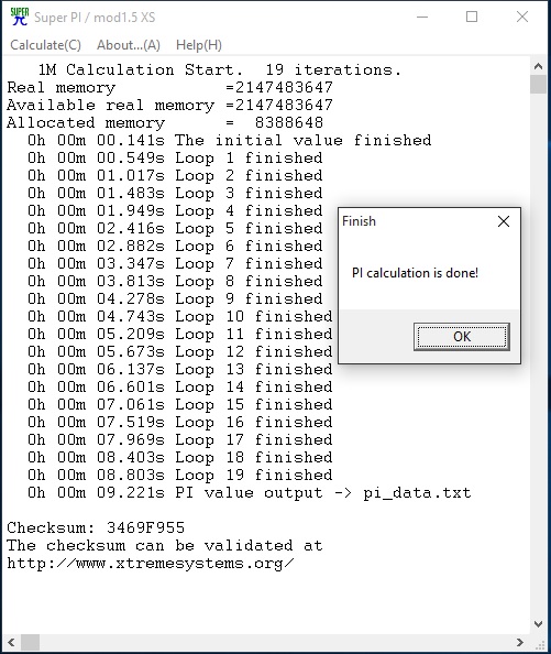 Test computing: SuperPI 1.5 mod XS–>