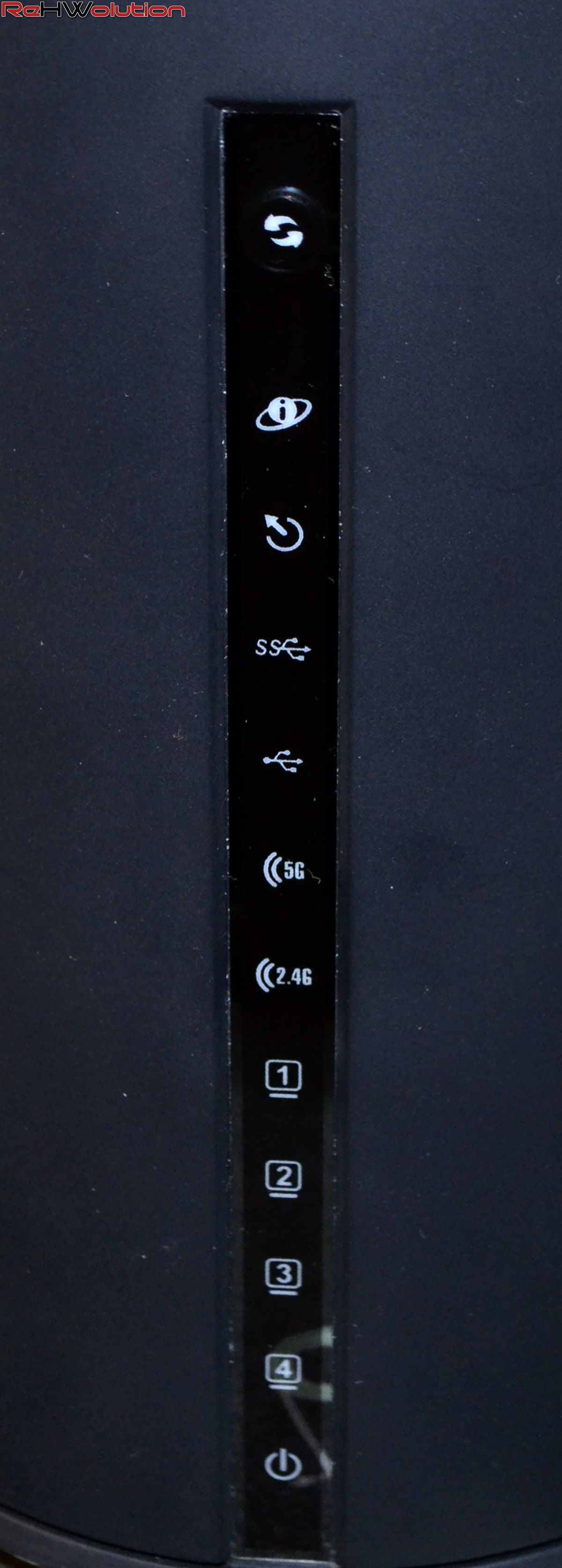Nella parte anteriore, sono presenti una serie di LED (ed il tasto WPS, in cima) che indicano il corretto funzionamento della connessione a internet, del routing, delle porte USB 2.0 e 3.0 (interessante vedere un LED per porta), delle due linee Wi-Fi, delle 4 porte Ethernet (anch’esse individualmente rappresentate) ed infine il LED che indica se il dispositivo è acceso o spento.