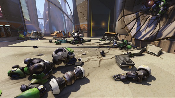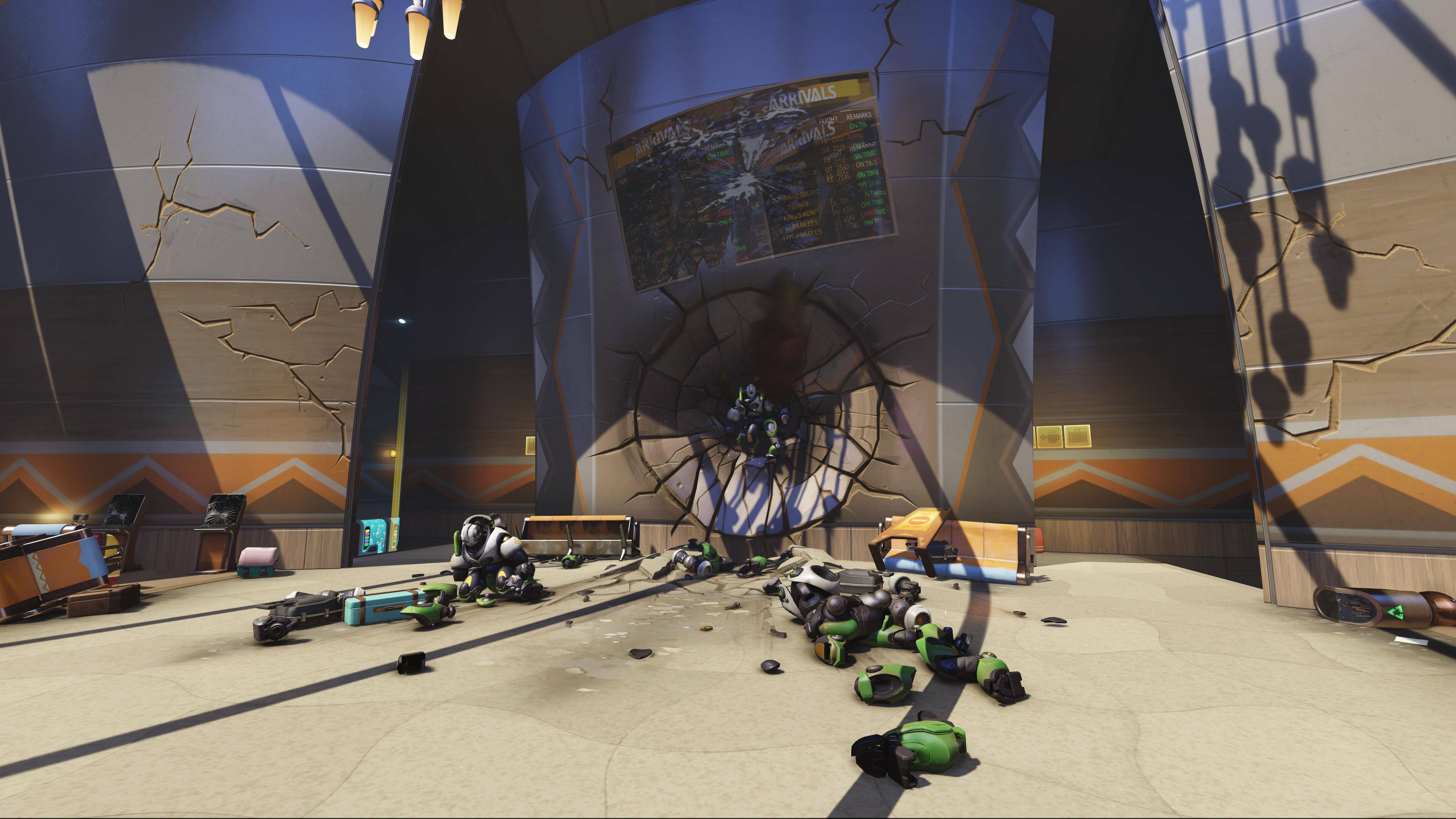 In seguito all’immagine rilasciata da Blizzard che vede l’aeroporto di Numbani sotto attacco terroristico il PTR è stato aggiornato questa notte con una serie di interessanti novità. Lo spawn d’attacco, l’aeroporto appunti, è completamente devastato con muri crepati e rottami di unità OR15 sparse un pò ovunque.