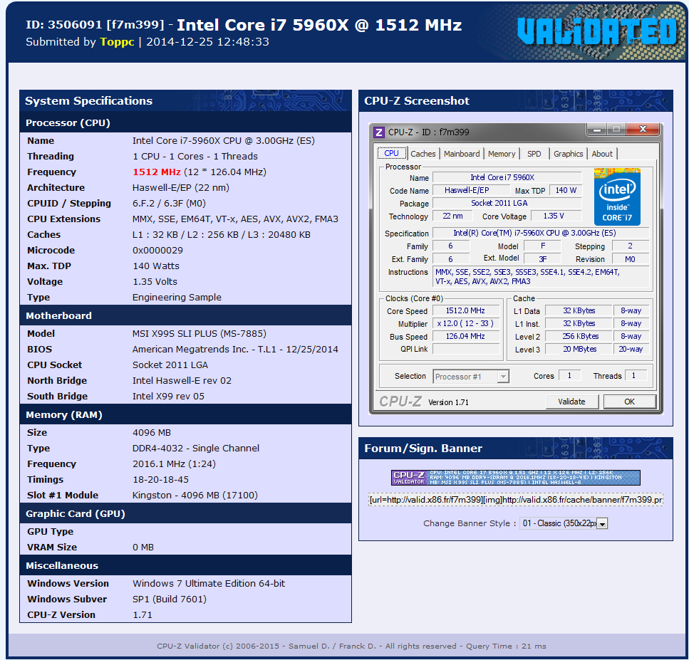 La MSI X99S SLI PLUS ha raggiunto la più alta velocità di clock per ram DDR4 ad opera dell’overclocker Toppc con una frequenza di ben 4032 MHz.