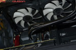 Grazie all’ottimizzazione dello spazio interno, in un NZXT Manta è possibile installare una quantità assurda di ventole, componenti ingombranti (anche se le schede che occupano più di due slot non sono supportate) e radiatori in ogni dove (o quasi…). Il radiatore di un dissipatore AIO può essere agevolmente “nascosto” tra il telaio e lo shroud in plastica del tetto, senza quindi andare a rubare spazio all’interno della struttura principale.