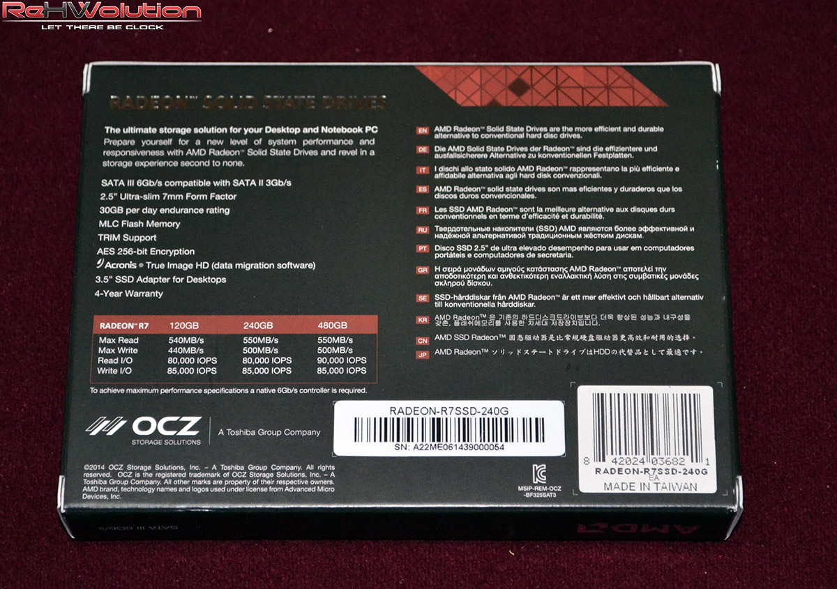 Galleria fotografica:OCZ AMD Radeon R7 SSD 240 GB–> Di seguito, poche ma indicative immagini per il drive, e la rispettiva confezione: