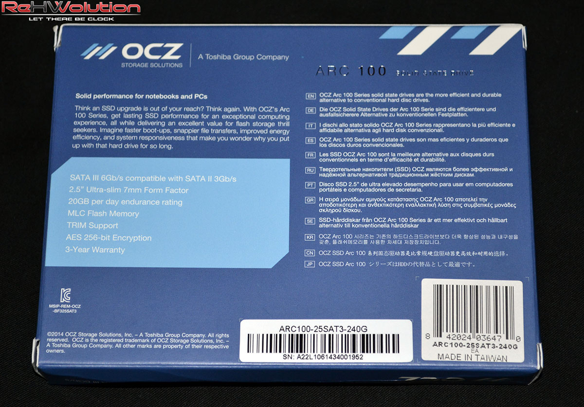 Galleria fotografica: OCZ ARC 100 240 GB–> Di seguito, poche ma indicative immagini per il drive, e la rispettiva confezione: