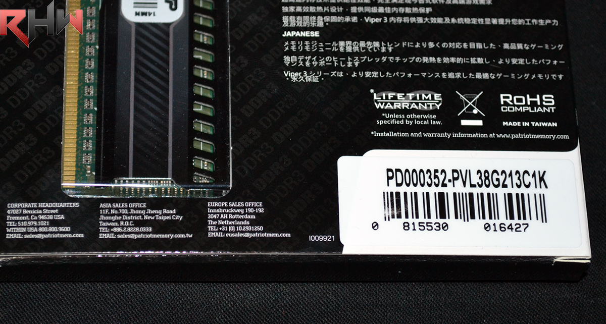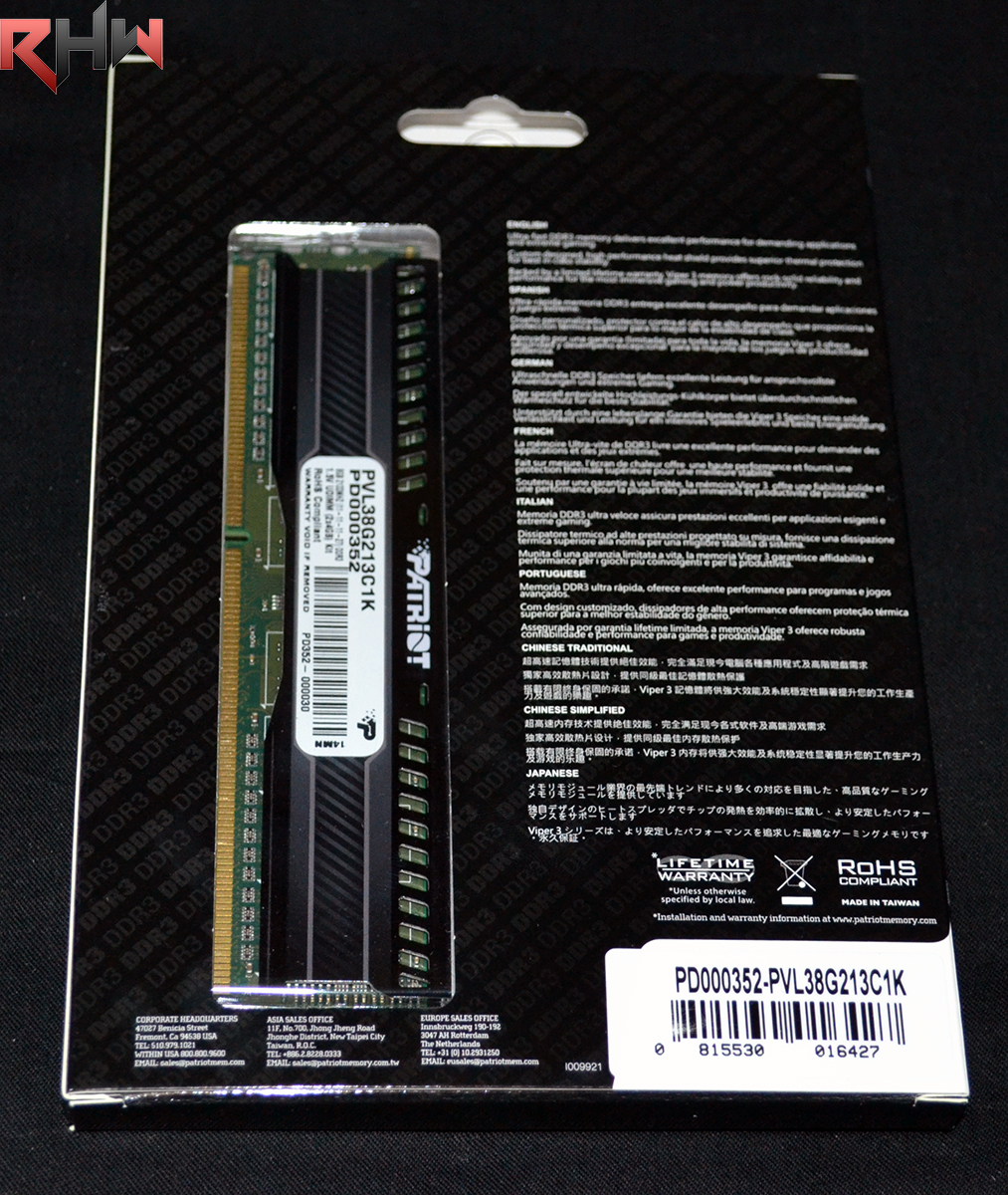 Galleria fotografica: Patriot Viper 3 Low Profile 8GB 2133MHz–> Di seguito, alcune immagini delle RAM e della confezione: