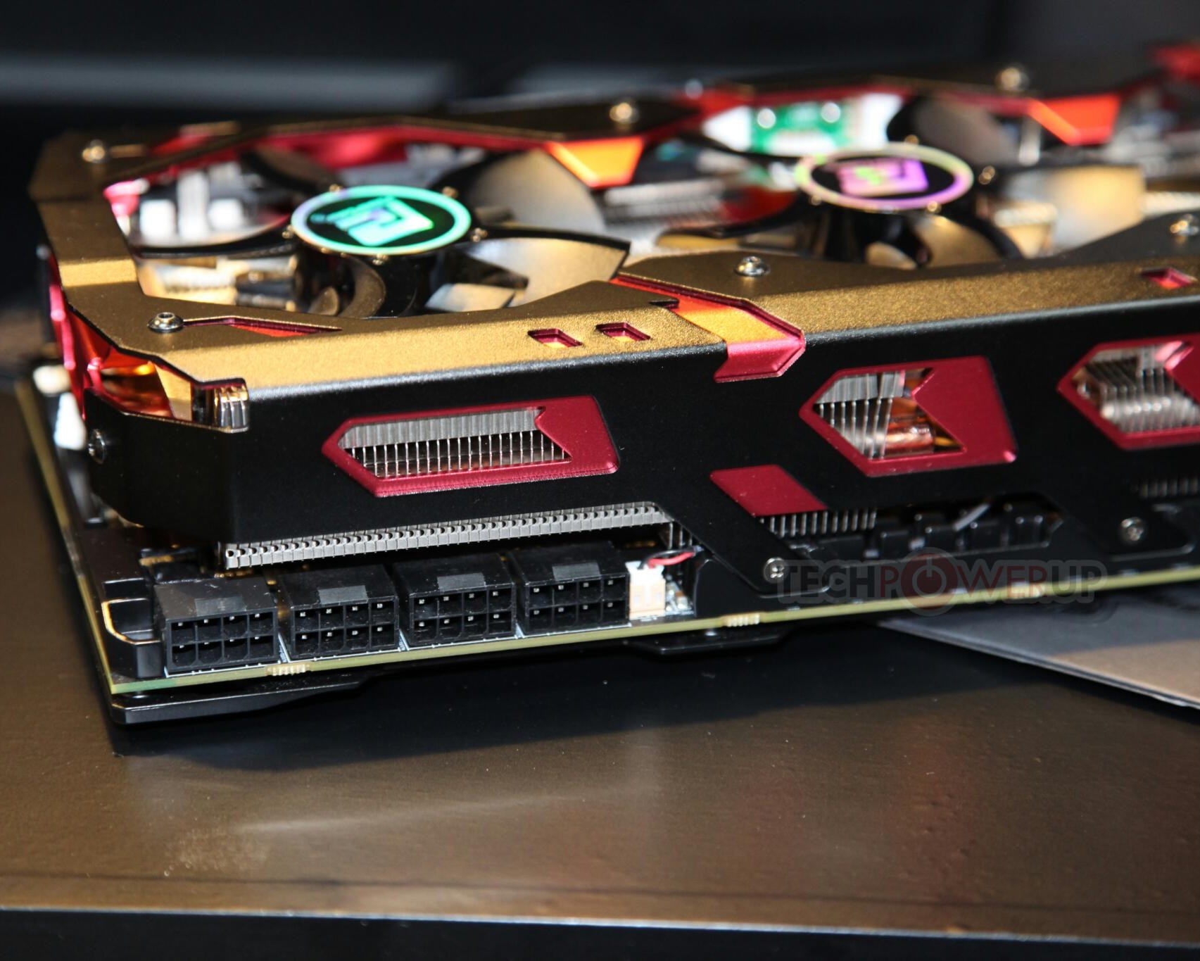 La scheda viene alimentata da quattro (sì, quattro) connettori PCI-E a 8-pin. Le uscite video comprendono due DVI dual-link, una porta HDMI e DisplayPort.