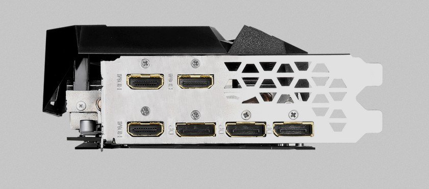 La scheda monta un dissipatore WindForce 2X a doppia ventola da 100mm. Troviamo anche in questo modello la possibilità di impostare la modalità Silent, in modo da attivare le ventole solo in un range massimo di temperatura. Il dissipatore è costruito interamente in alluminio, disponendo di 5 heatpipe in rame e un backplate per raffreddare al meglio le fasi e memorie presenti sul retro.
