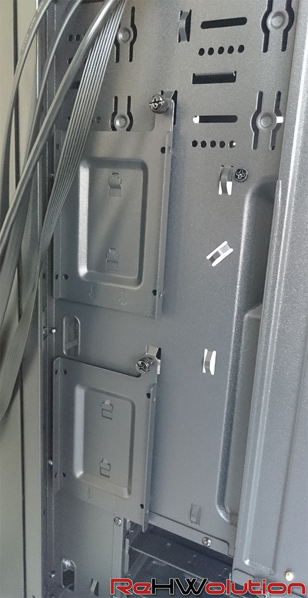 La particolarità che salta all’occhio è la pulizia maniacale che si riesce a percepire una volta montato tutti i componenti dentro il case: nessun cavo, se non quello della GPU, sarà visibile guardando attraverso la paratia con finestra, complice il profilato in metallo che ha il semplice ma efficace compito di nascondere la zona alimentatore e relativi cavi, insieme ad un’altra zona dedicata alle unità di storage. E qui la nota dolente: purtroppo, e ribadiamo purtroppo, il Monster II non ci da’ l’opportunità di rimuovere tale supporto, peccato, il quale ci avrebbe sicuramente facilitato durante l’installazione del PSU e la gestione dei cavi.