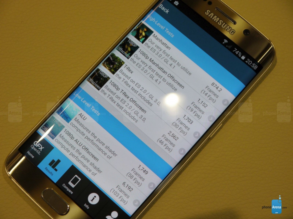Il cambio di prestazioni rispetto Galaxy S5 è stato veramente stratosferico. A parte il design, che vede materiali più nobili, si è fatto notare soprattutto il processore Exynos 7420, realizzato con processo produttivo FinFET a 14nm. I risultati hanno fatto registrare il primato mondiale su AnTuTu con ben 69019 punti distaccandosi dagli attuali mostri come Note 4, Meizu MX4 e OnePlus One.