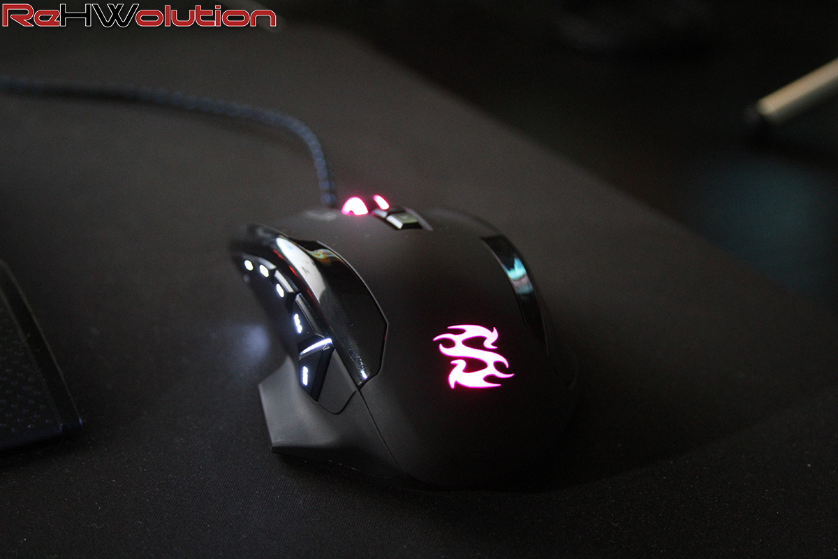 I materiali sono di ottima qualità, durante l’utilizzo la mano non scivola, non suda troppo e scorre bene sia su scrivania che su pad professionale. Ottimo il lato estetico, al buio mostra il massimo di sè con i colori RGB a pulsazione e i tasti laterali illuminati di bianco. Il cavo sleevato di blu/nero rende il mouse ancora piu’ moderno ed elegante. Un mouse a cui non manca davvero nulla. Ottimo anche il sistema di regolazione del peso , tramite un tastino possiamo far scorrere lateralmente l’alloggio “pesi”.
