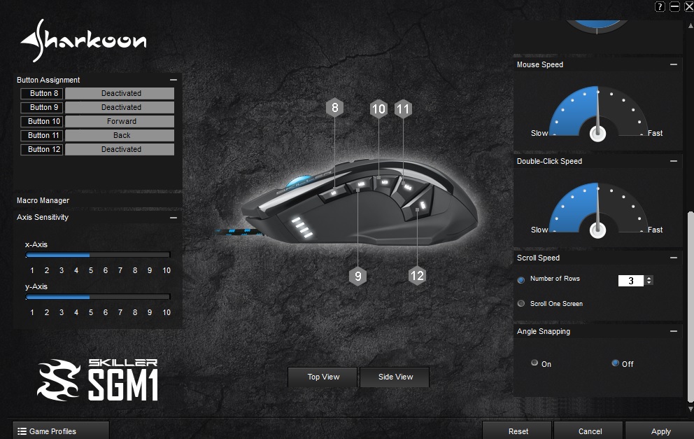 Abbiamo la possibilità di personalizzare i 12 tasti programmabili che ci offre il mouse, gestione delle funzioni di illuminazione RGB del mouse, creare o gestire profili di gioco in modo da aver il mouse adatto per ogni tipo di utilizzo. Possiamo regolare sensibilità DPI a nostro piacimento, regolazione del polling fino ad un massimo di 1000 HZ, gestione del doppio click e scroll speed. Non manca davvero nulla!