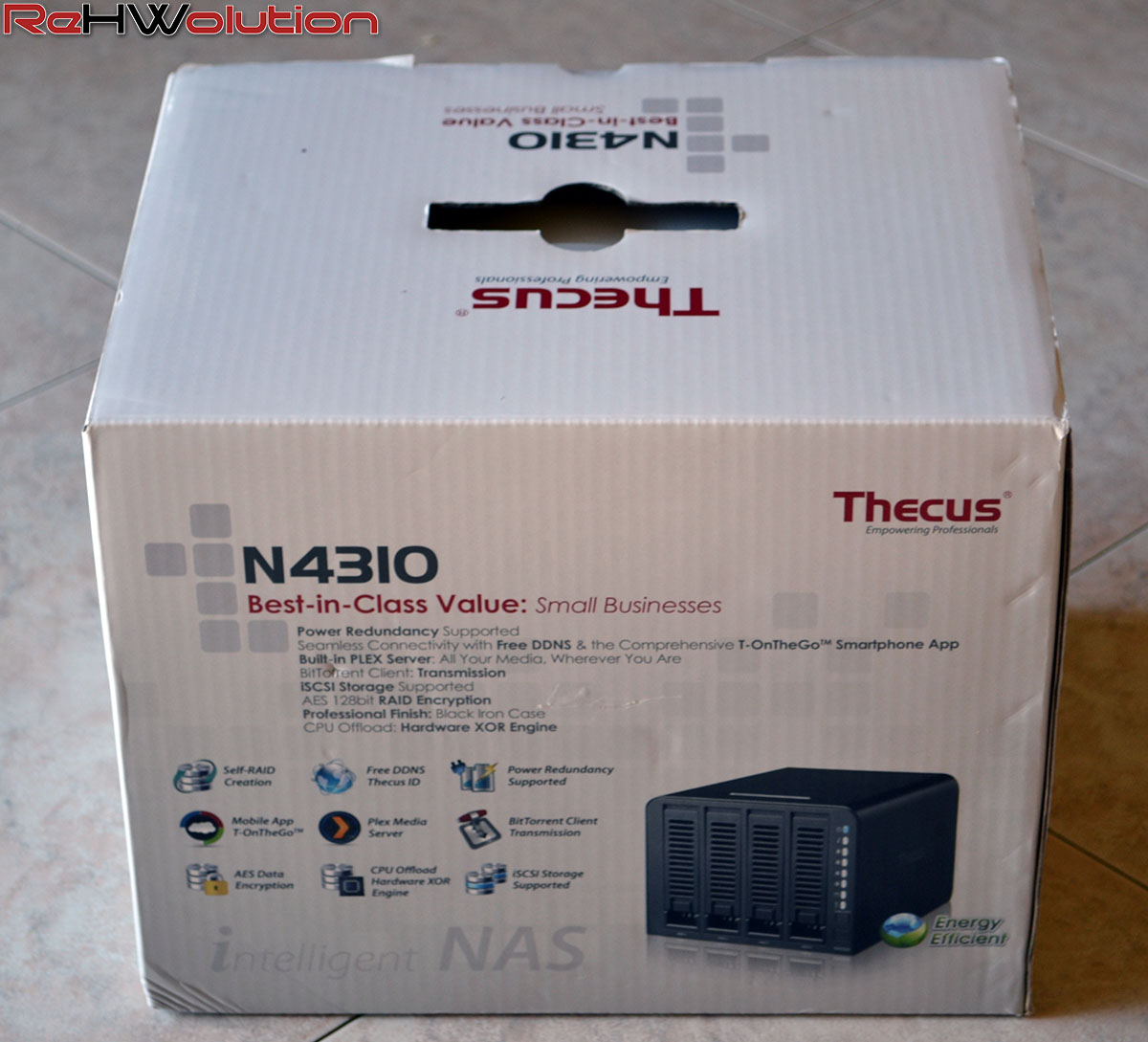 Il NAS è un 4 Bay dotato di SoC AMCC da 1 GHz Single Core abbinato ad 1 GB di memoria DDR3. Ideato per essere il fratello maggiore del Thecus N2310, esso ne condivide l’hardware di gestione ed il sistema operativo, basato ovviamente su Linux, vista la lineup a cui appartiene. Il sistema, oltre a presentare consumi ridotti (30 W in full) ma non presenta compatibilità con gli standard europei per i consumi in Sleep Mode, che invece di essere 0.5 W si attestano su ben 10 W.