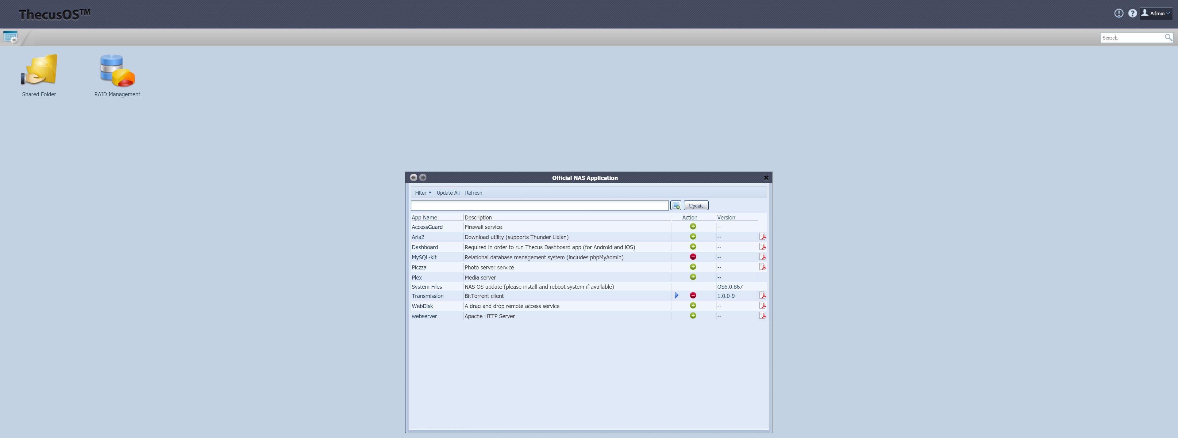 L’OS di cui è dotato il NAS è davvero completo: dalla gestione in remoto tramite app per Smartphone (a cui manca, però, il supporto a Windows Phone) al download automatico tramite client di Torrent come BitTorrent o Transmission, con la possibilità di collegare il proprio NAS ad internet e renderlo una sorta di “cloud privato”. Utile in ambiente PMI dove è necessario rendere disponibili dei file in una LAN (o una WAN), il Thecus N4310 ha peccato di prestazioni leggermente sotto la media, a causa del SoC AMCC Single Core da 1 GHz, non proprio all’altezza di un sistema a 4 bays.
