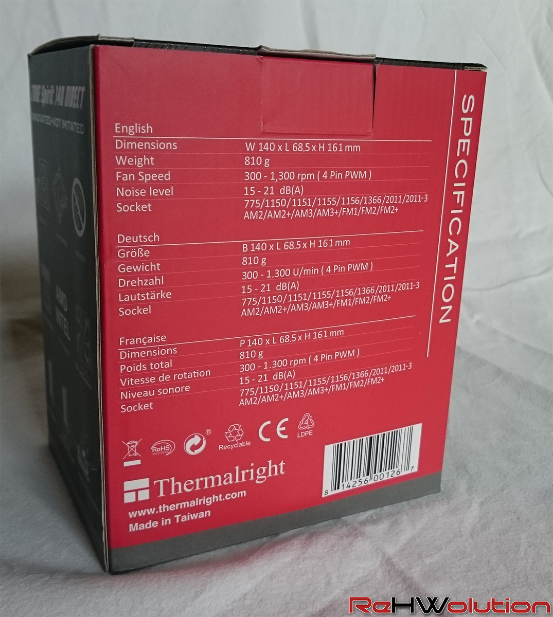 Con una fase di snellimento avviata con il True Spirit 140 Rev. A, la seconda versione della line-up True Spirit, Thermalright è riuscita con una struttura dissipante ancora più limitata a rendere le prestazioni invariate, se non migliori, grazie ad un corpo lamellare collegato alla base del dissipatore attraverso cinque heatpipes in rame nichelato, con diametro da 6mm, a diretto contatto con la CPU. Da qui il nome Direct, che contraddistinge le nuove versioni 2016 con quelle passate del noto marchio.