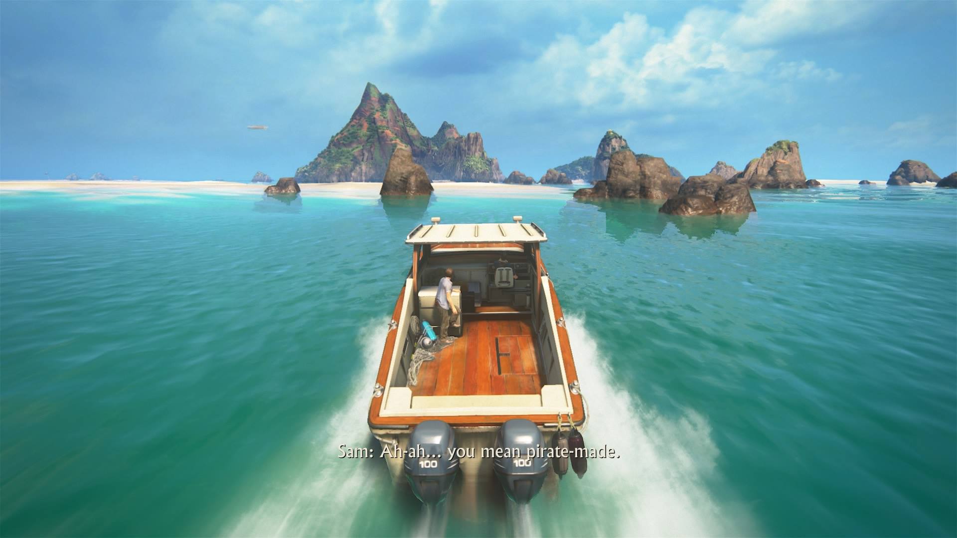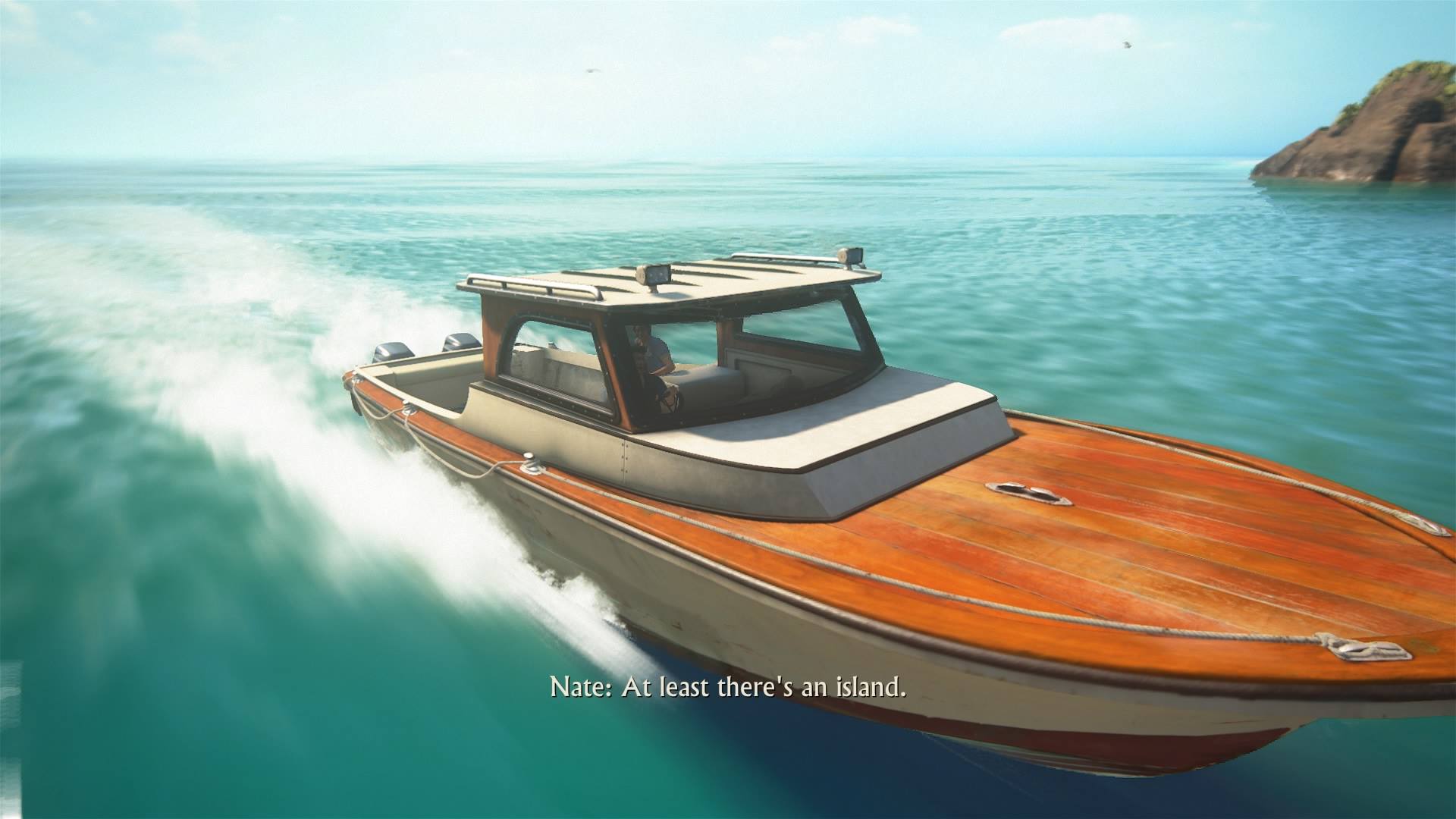 La Naughty dog, con il suo solito storytelling eccezionale, ci catapulta direttamente nell’azione. La storia comincia subito con Nathan e suo fratello Sam che sono coinvolti in un emozionante inseguimento a bordo di un motoscafo durante una grande tempesta, inseguiti da una banda di mercenari che cerca di rovesciare la loro barca. L’introduzione finisce bruscamente dopo che la barca dei nostri eroi si scontra con una barca in fiamme che veniva dritta verso di loro.