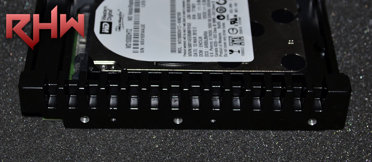 Come già accennato nelle specifiche tecniche, il drive presenta un form factor di 2.5″, ed è montato in un bracket/dissipatore della dimensione di 3.5″, che permette di tenere a bada le temperature operative senza dover ricorrere a sistemi attivi, contenendo (per quanto possibile) la rumorosità del sistema. Sul lato superiore, troviamo l’etichetta con alcune informazioni del Drive: