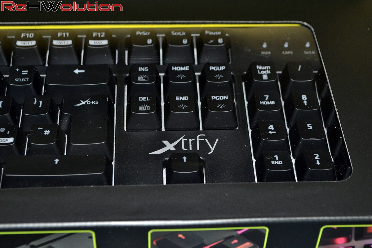 Sviluppata in collaborazione con i Ninjas In Pyjamas, la XTRFY XG-K2 ha un design davvero minimalista e compatto (per quanto compatta possa essere una tastiera da 105 tasti), con un passo tra i tasti confortevole e nessun tasto multimediale diretto. I comandi come VolUp, VolDown, Mute e via discorrendo sono infatti ottenuti con il tasto FN e alcuni dei tasti Fx, anche se non abbiamo tasti per il controllo delle tracce musicali, segno che la K2 è devota al gaming nudo e crudo. Su molti tasti sono presenti gli overlay per indicare quale modalità di illuminazione viene attivata se in associazione col suddetto tasto Fn.