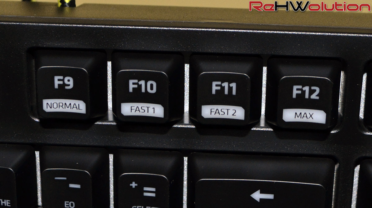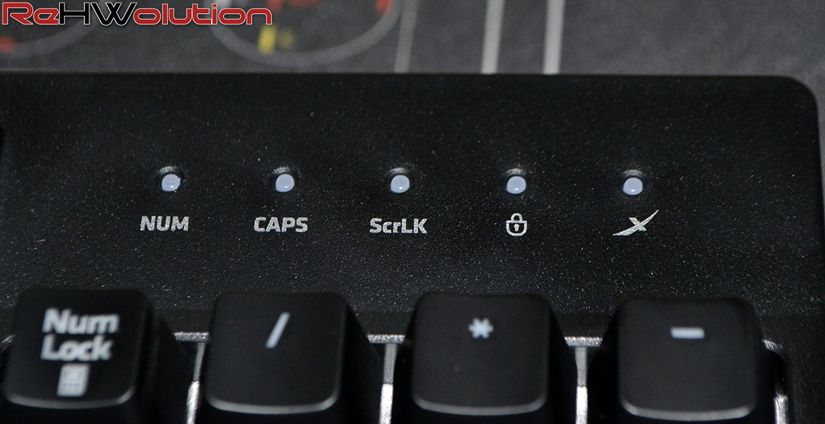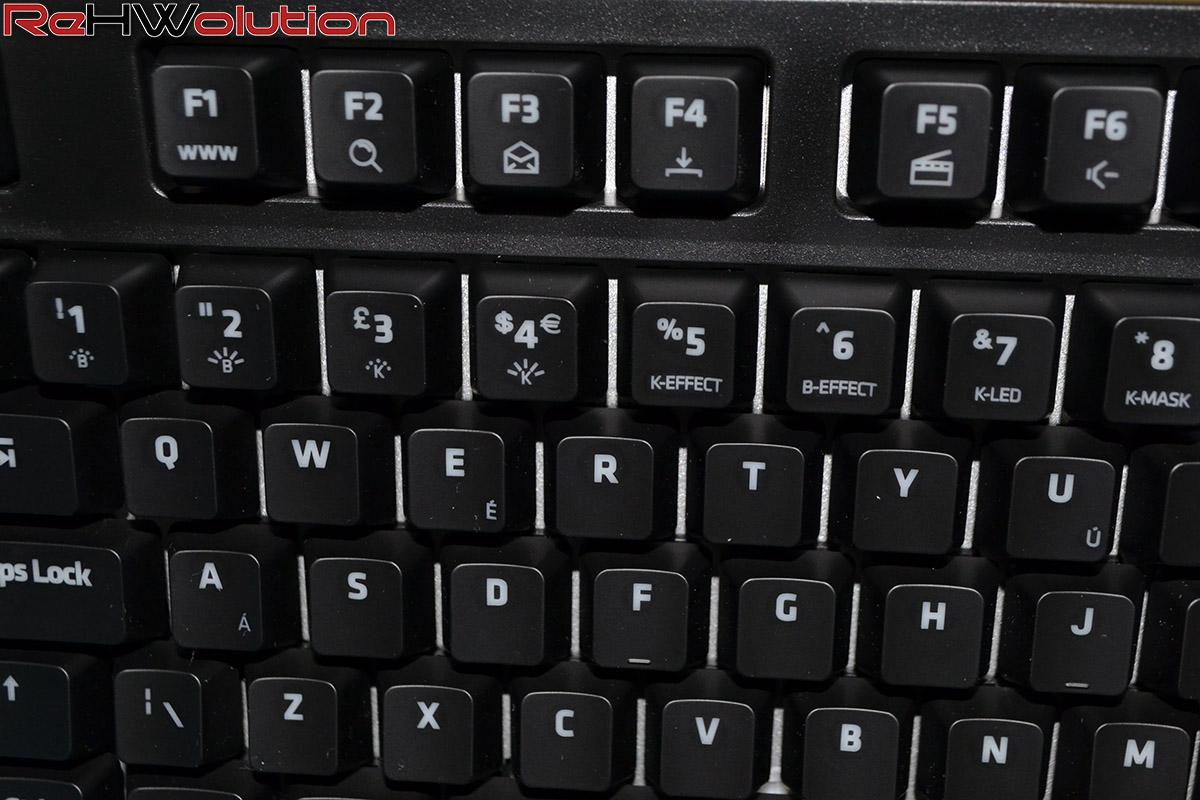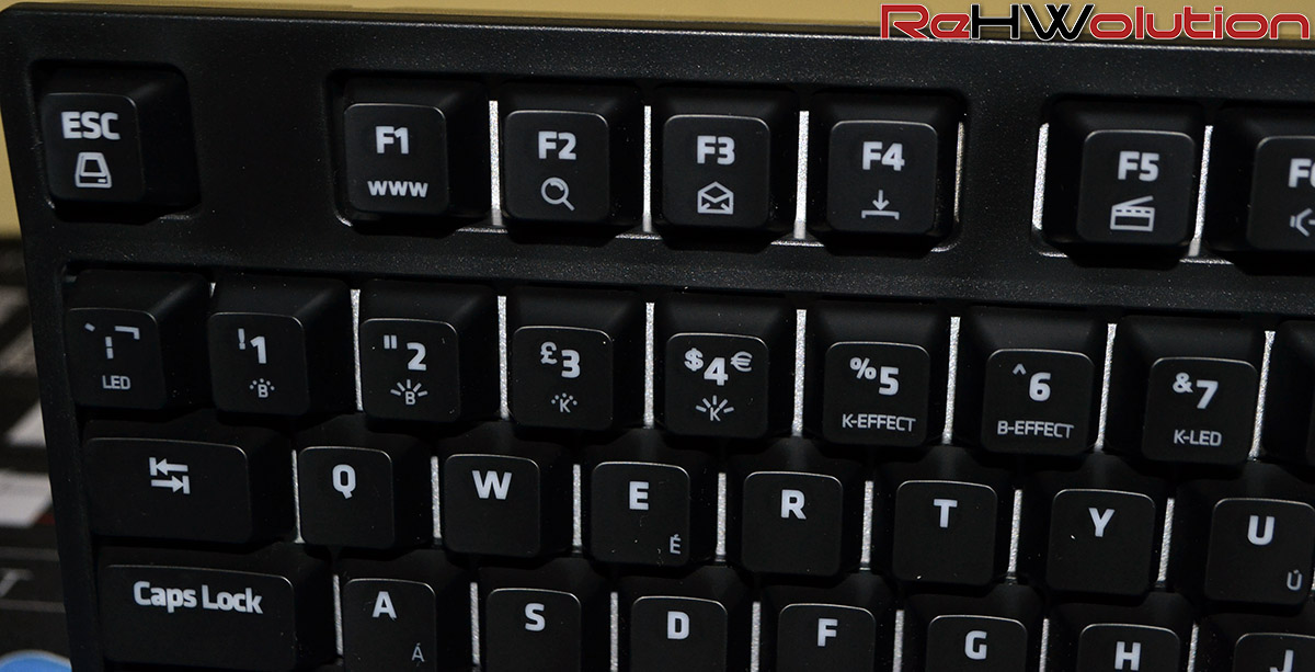 Al posto dei tradizionali Cherry MX, stavolta troviamo i Kailh Red, switch meccanici che portano con sé una forza di attuazione pari a 50g invece che 45g della controparte più “famosa”, ponendosi come “compromesso” tra uno switch lineare come il Cherry MX Red ed uno con click feedback come il Cherry MX Blue, che porta la stessa forza di attuazione degli switch di questa tastiera.