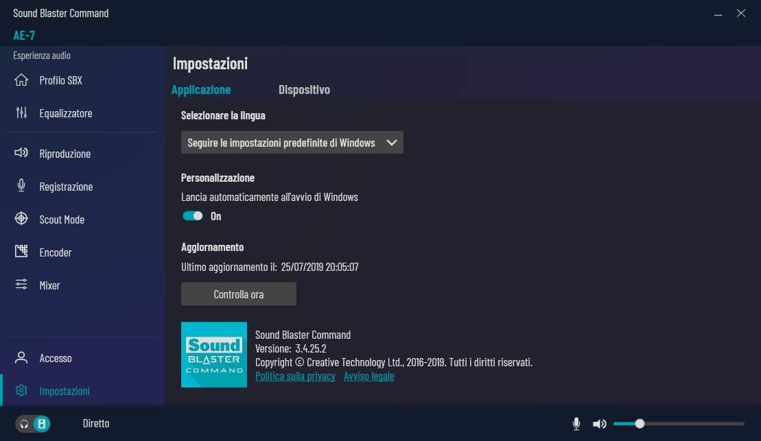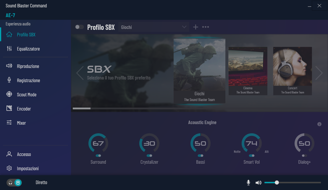 In occasione del lancio della Sound Blaster AE-7 e della AE-9, Creative ha lanciato un nuovo software, chiamato Sound Blaster Command, che include tutti i parametri impostabili sulla scheda audio, dal preset all’equalizzazione ai dispositivi di riproduzione e registrazione: